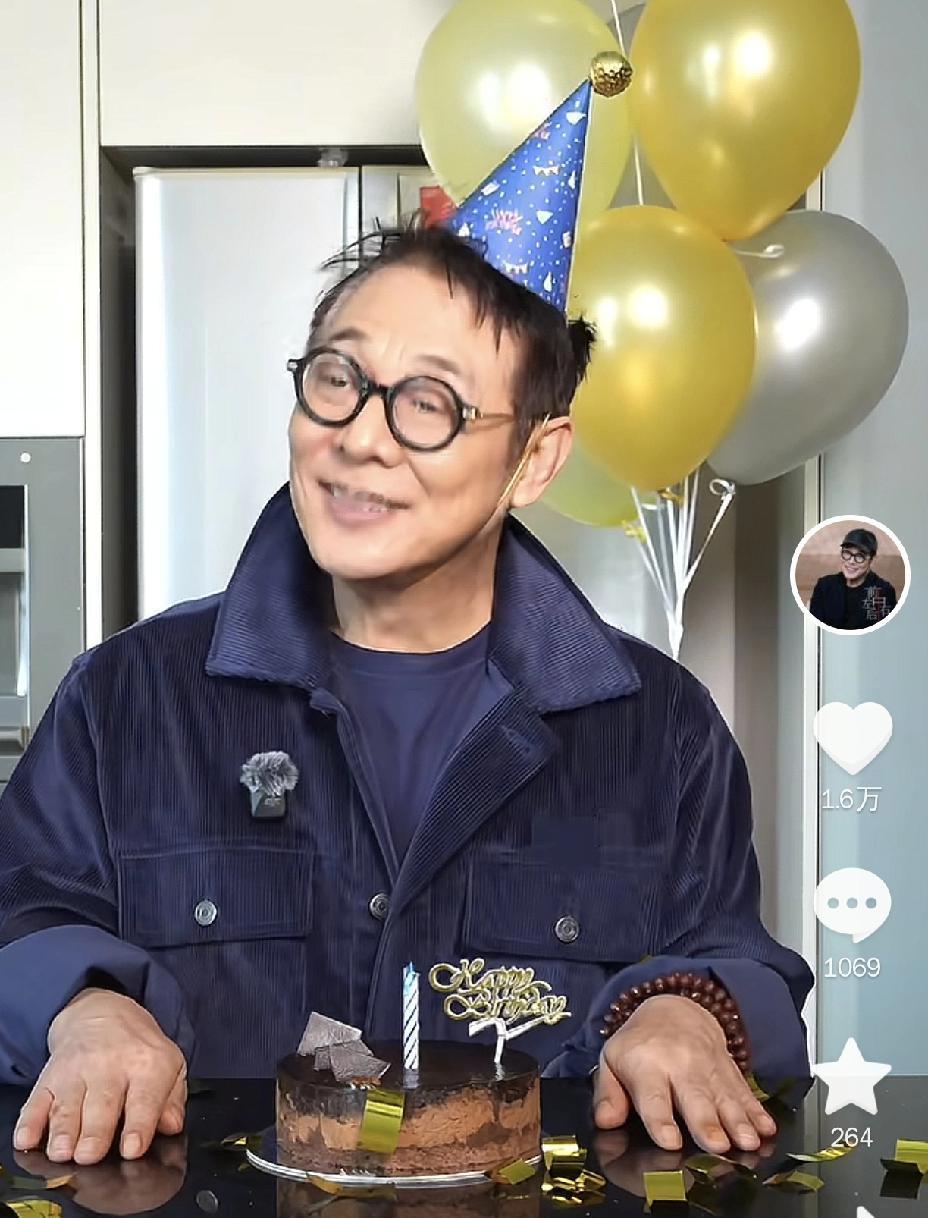 原因很简单,今天是他生日,女儿特意赶来给他庆生,镜头前的李连杰坐在桌前,桌上摆着一个精致的巧克力蛋糕,他头上戴着蓝色的生日帽,整个人笑得合不拢嘴,那种发自心底的喜悦,隔着屏幕都能把人感染。