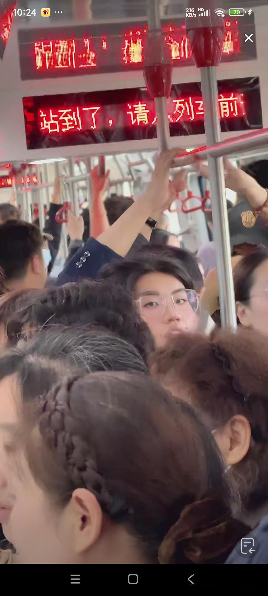 南京地铁【南京地铁S2号线宁马城际 】 网友投稿:宁马城际S2今日(2026-04-26,周日)继续火爆,抖音某位博主的直播截图,此时列车停靠湖北路二中站:(4B,高峰间隔6分)——昨日S2一战成名,成为S王