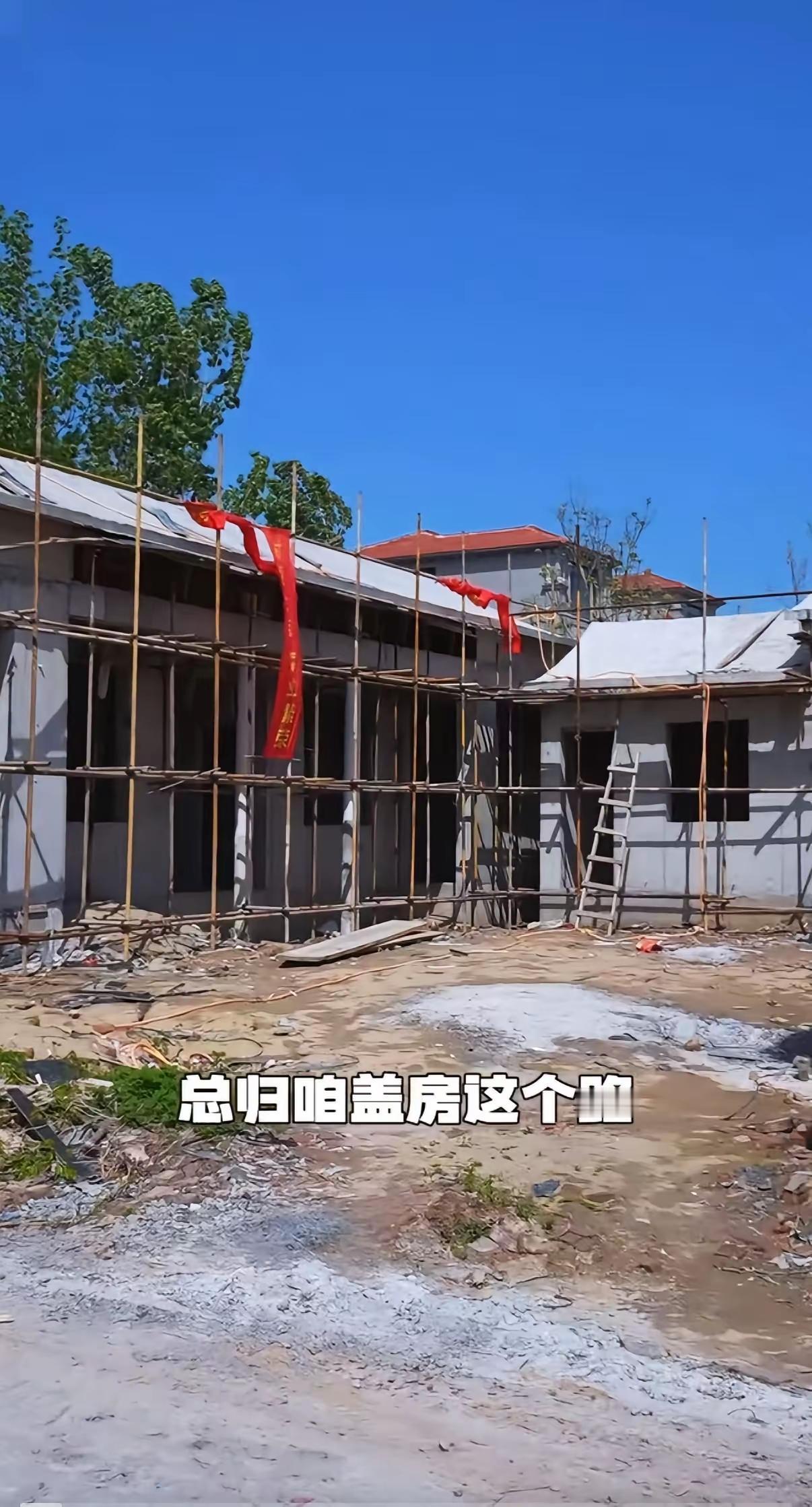 盖房的老父亲看着委屈直接诉苦:“旧的没了,新的也没盖利索,连家里小狗都没个安稳窝。”