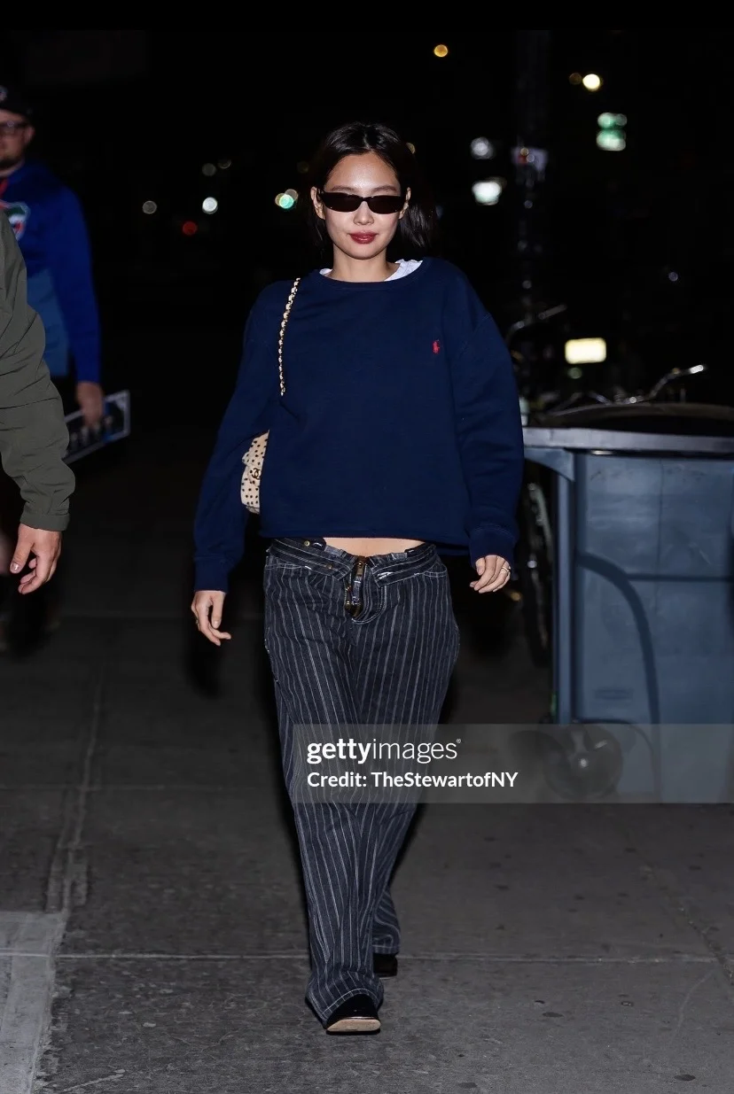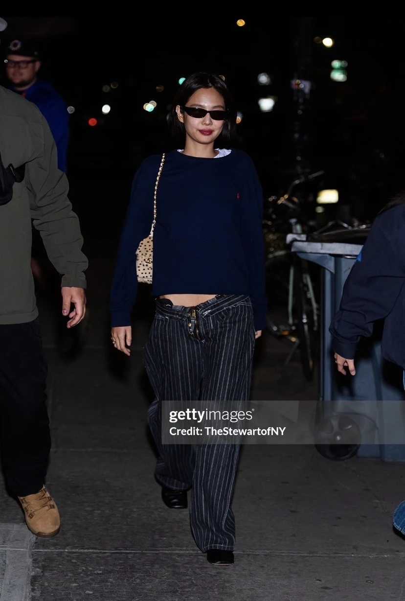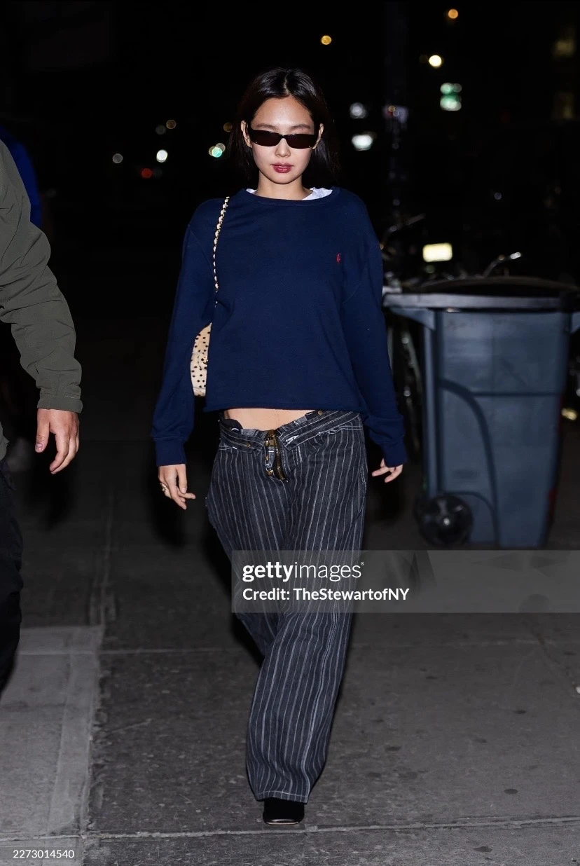 Jennie纽约夜出私服,美式松弛感低腰裤又来