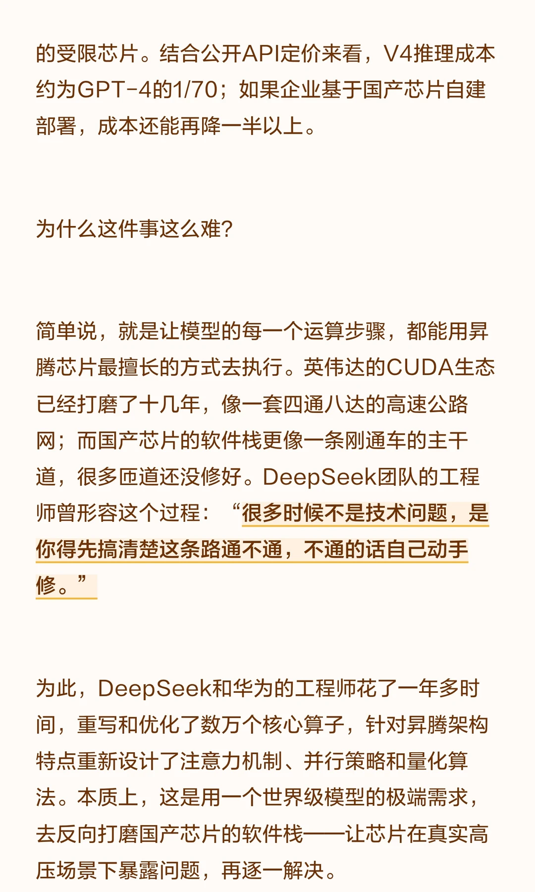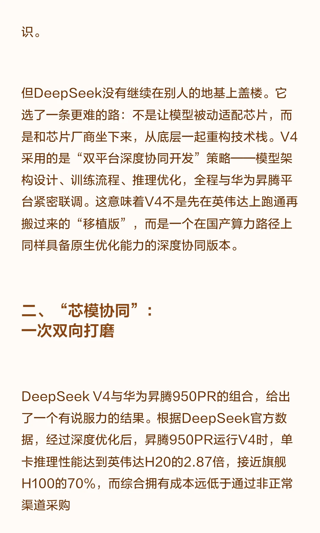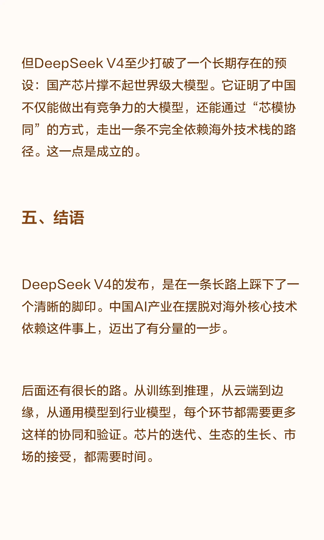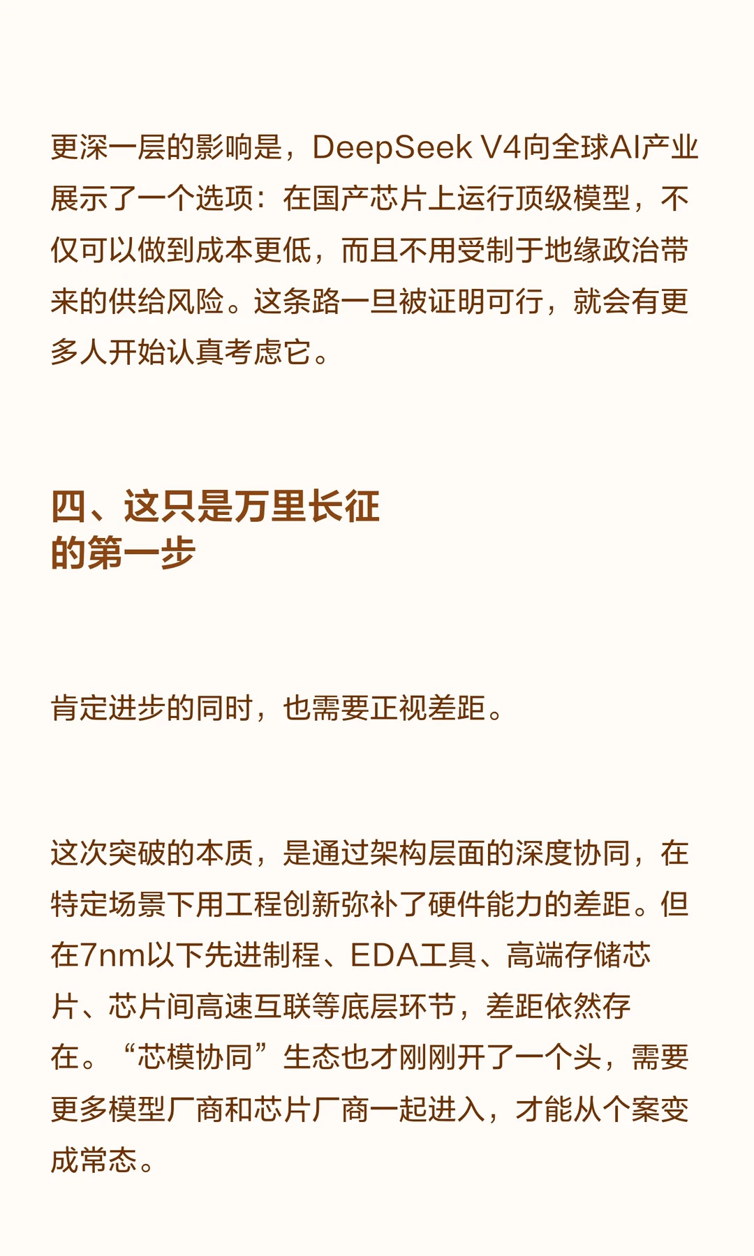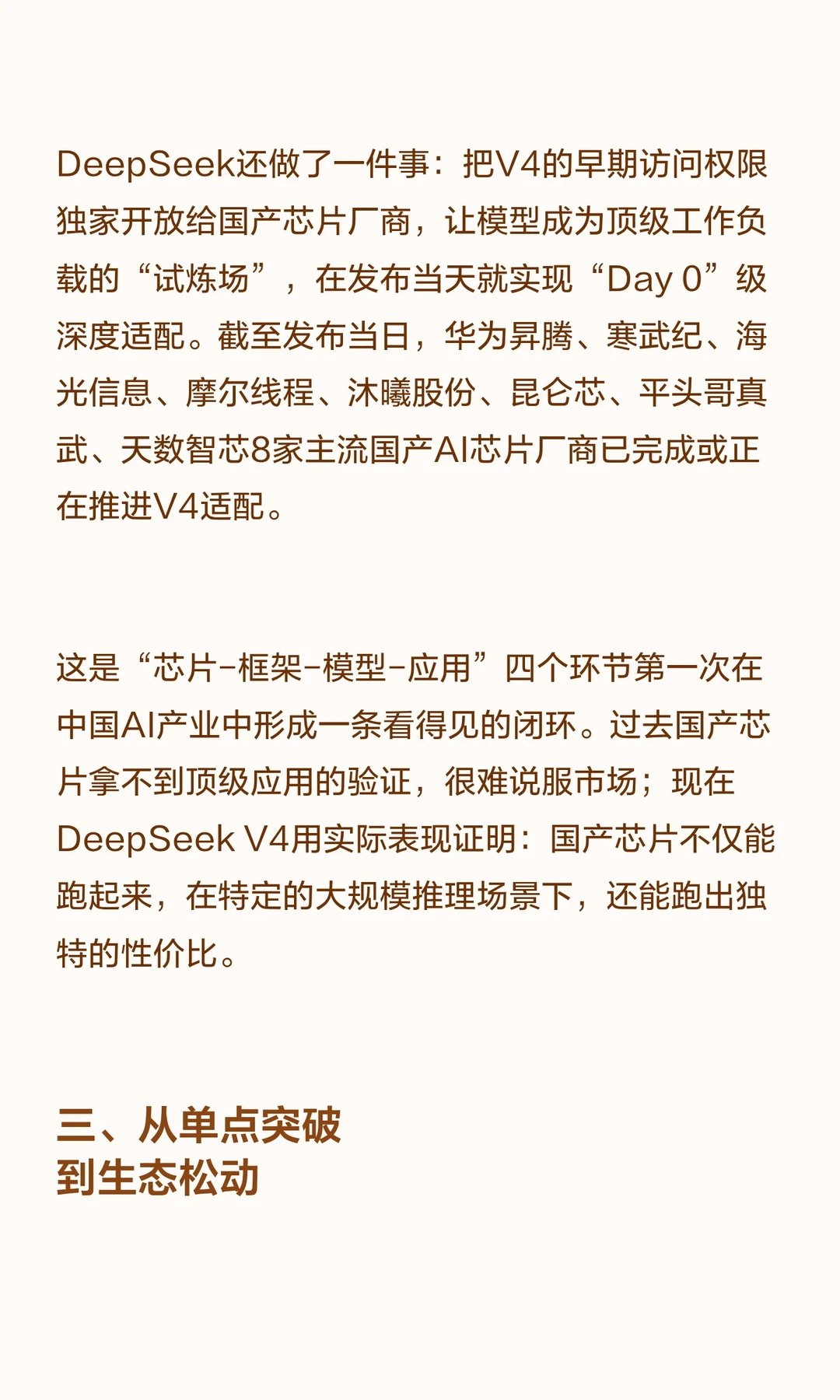 DeepSeek V4发布,首次在架构设计阶段与华为昇腾芯片深度协同,实现万亿级大模型的国产芯片运行。