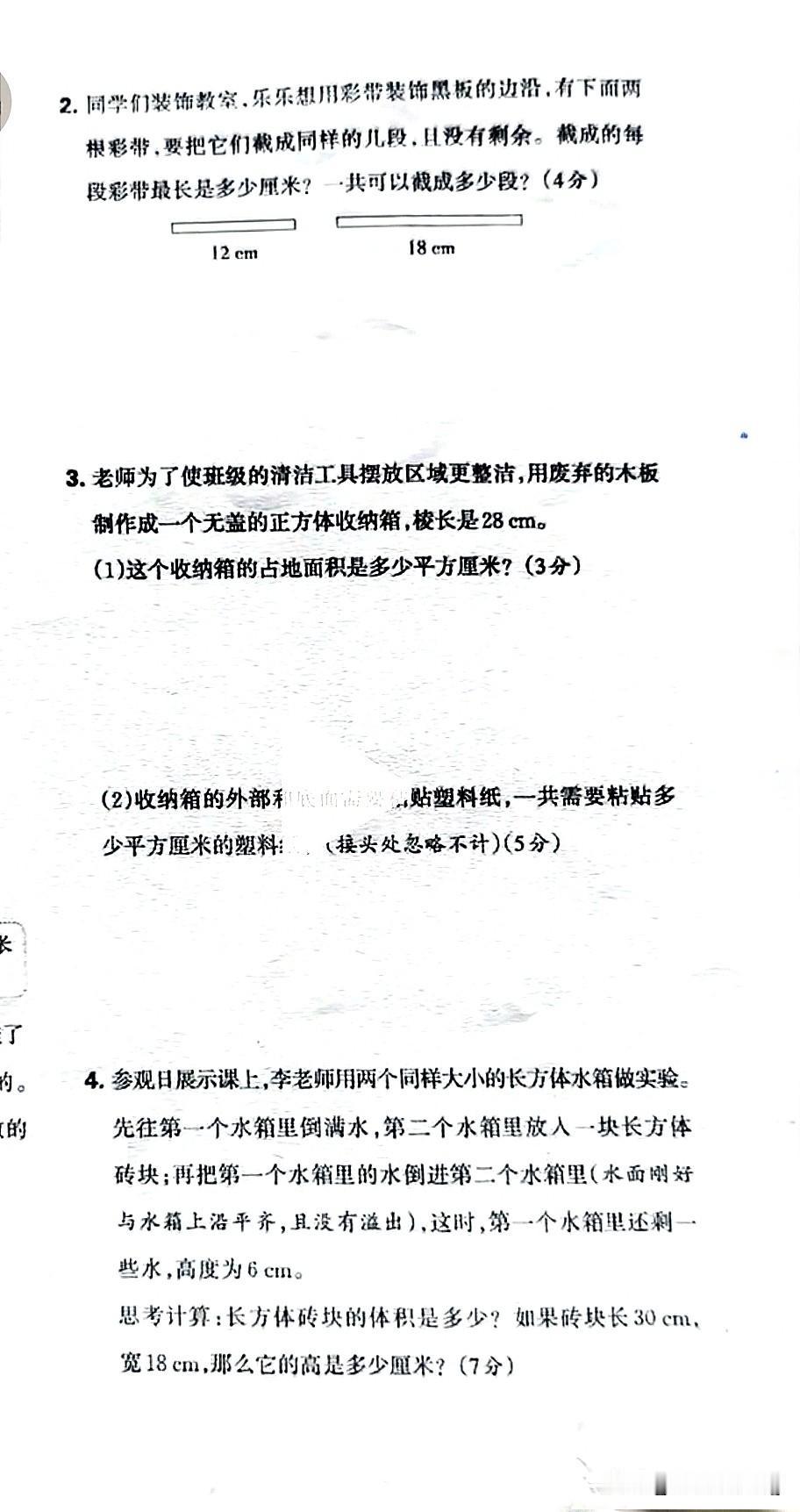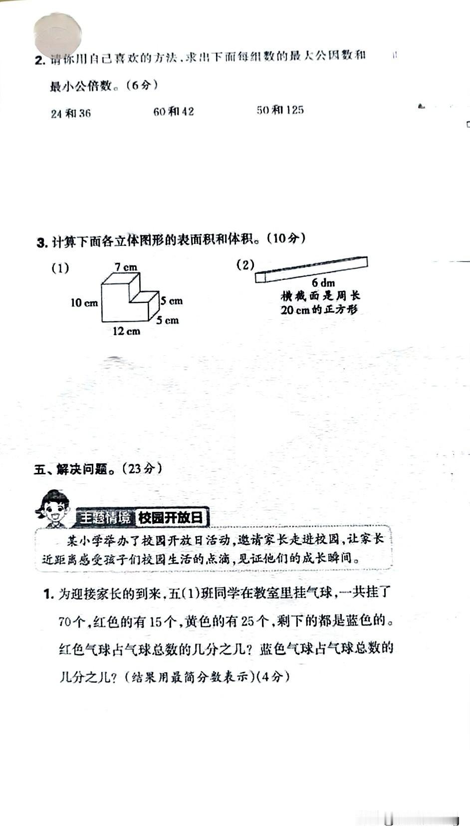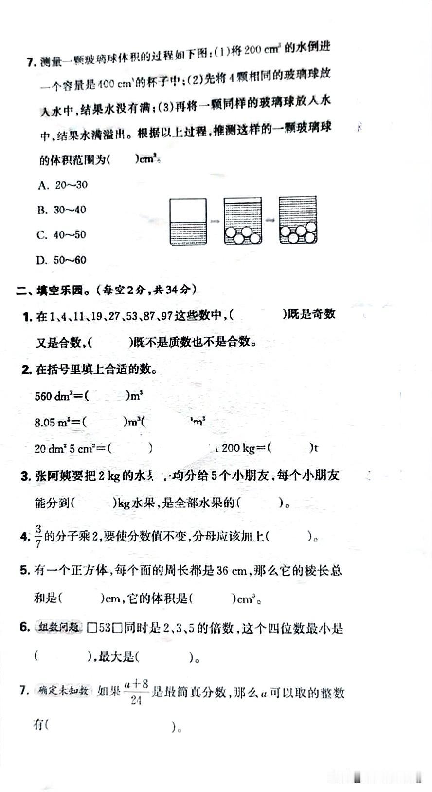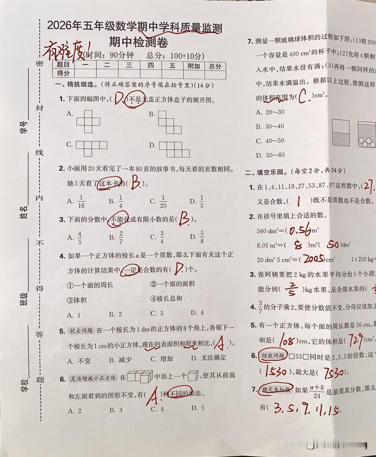五年级下册数学期中质量监测,挑战你的智慧!