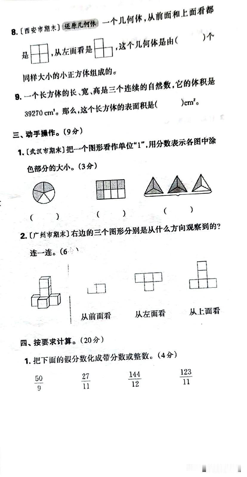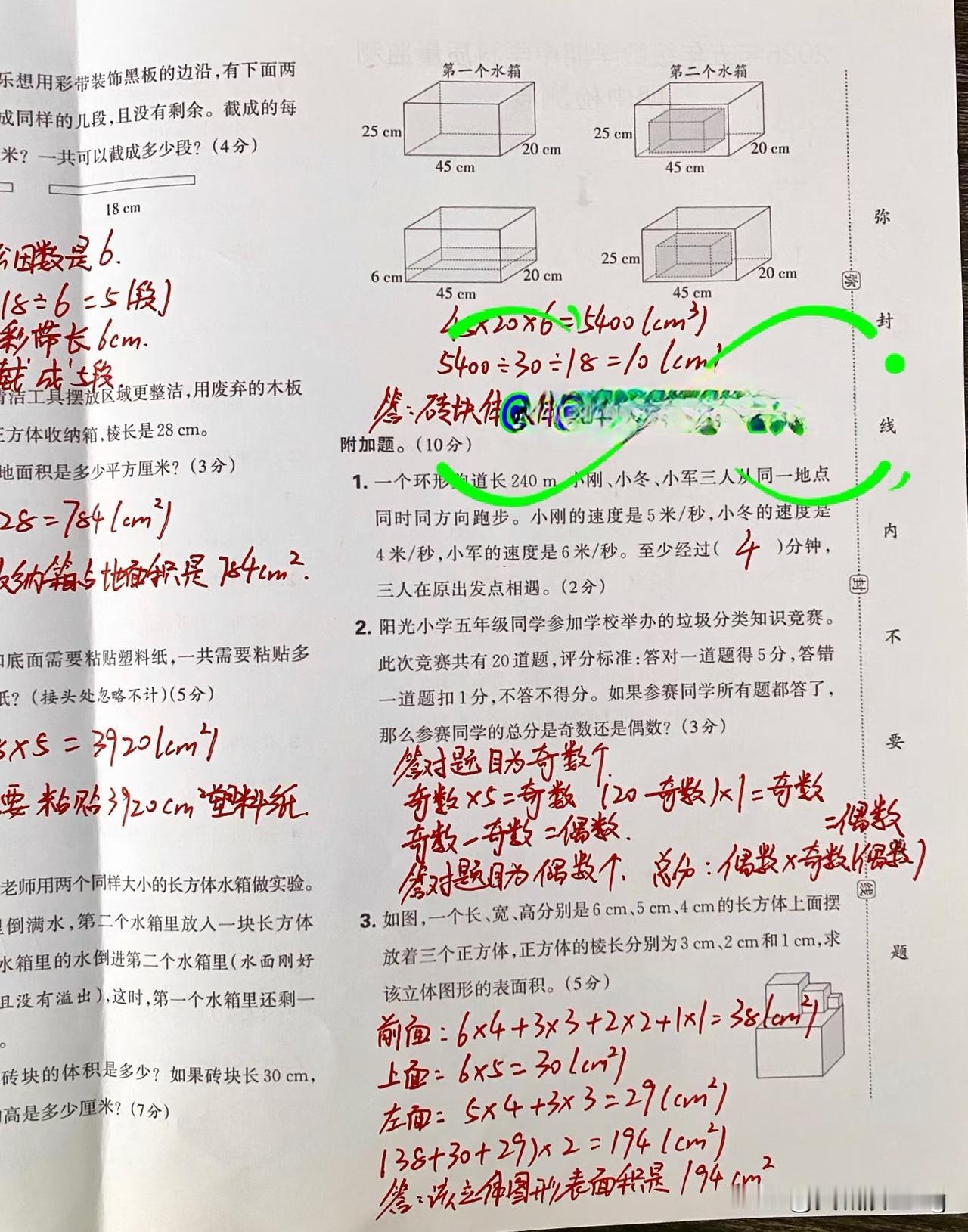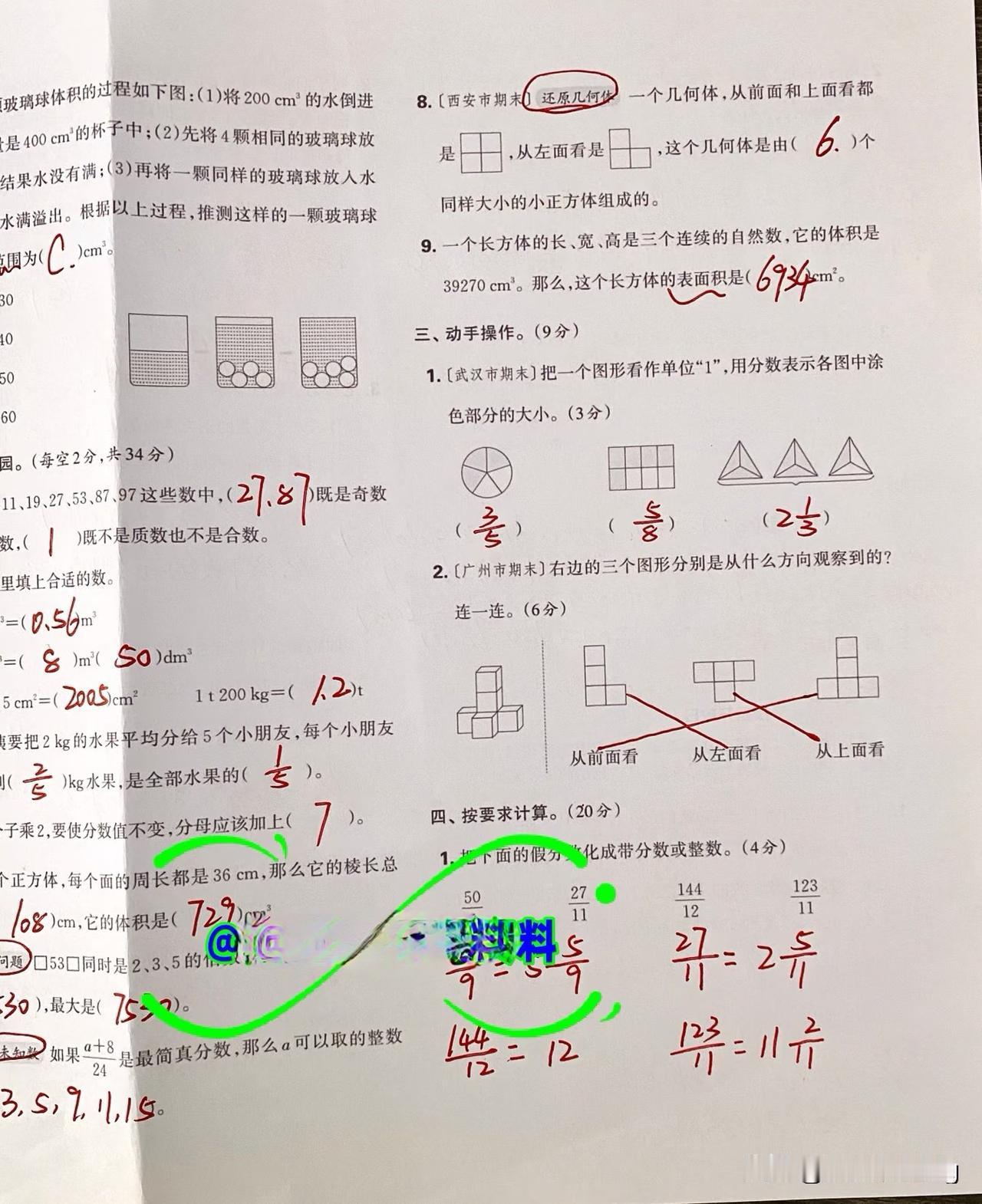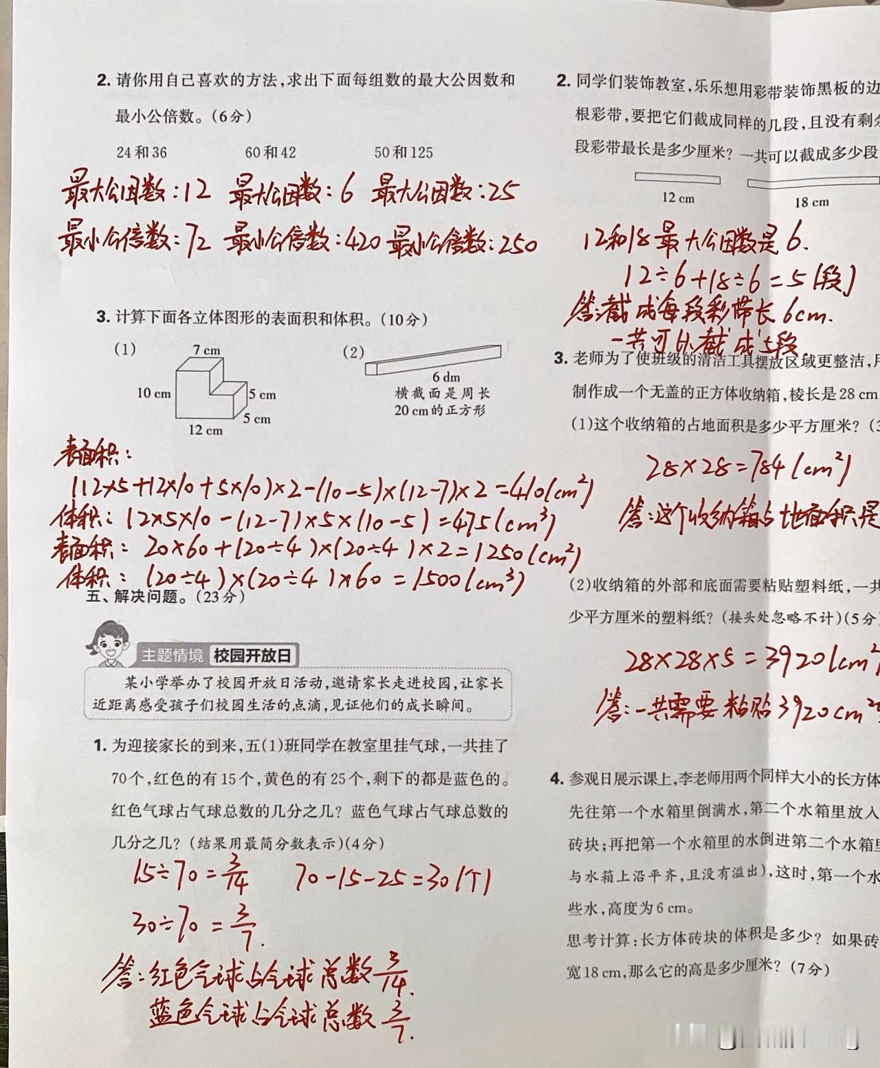 五年级下册数学期中质量监测,挑战你的智慧!