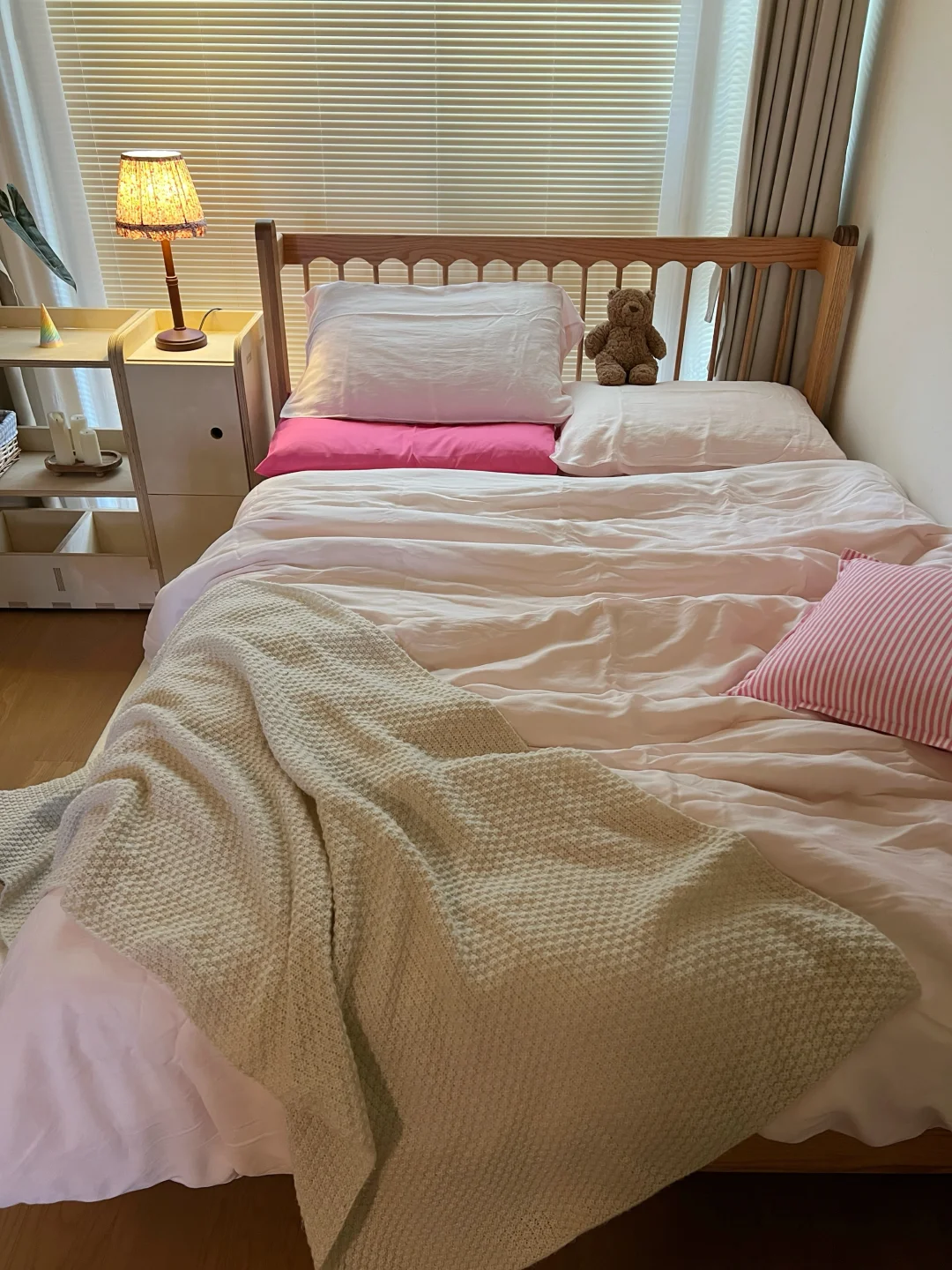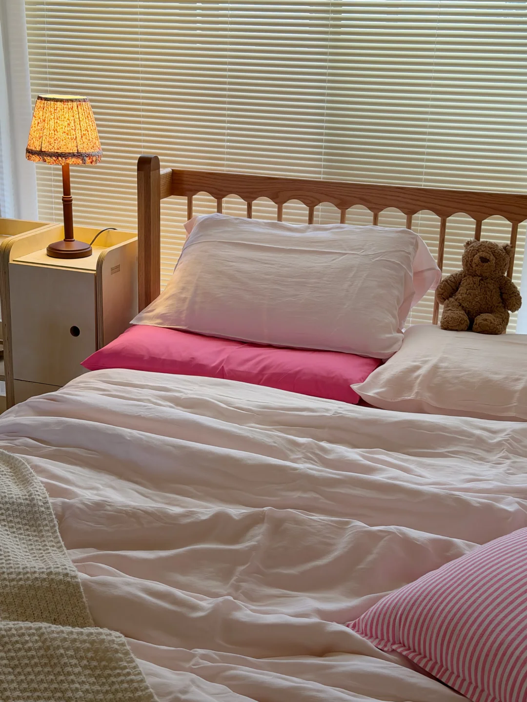 换上粉嫩的床品真的好好看