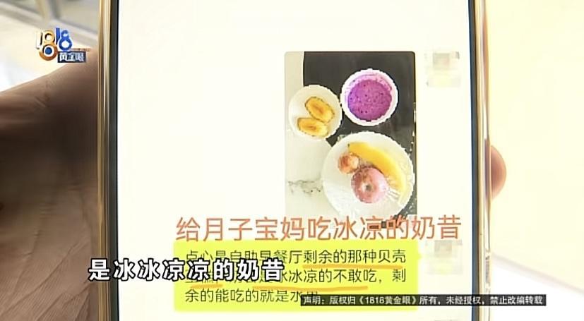 浙江杭州,女子产后花30万住高档月子中心,本想好好休养,结果月子餐居然配的是油炸