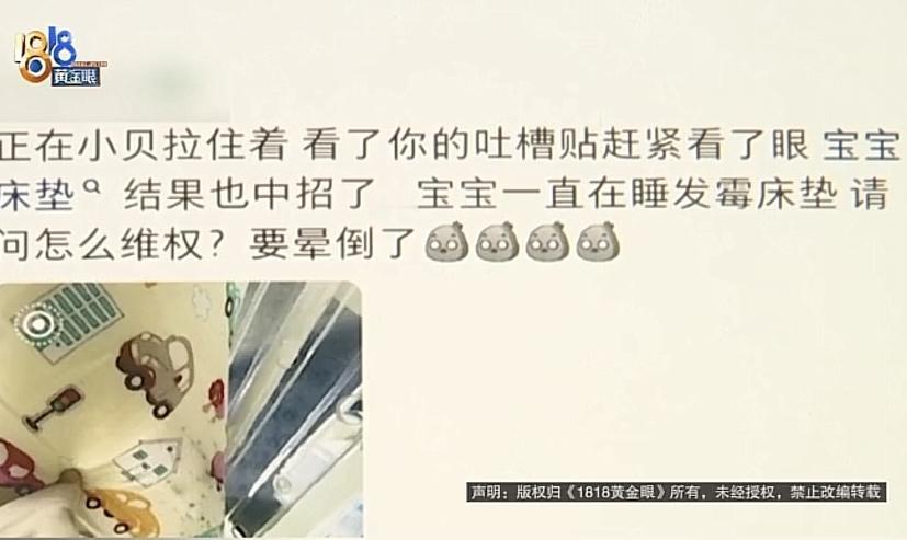 宝宝睡的婴儿床里居然发现了书虱,吓得周女士赶紧找工作人员要说法,对方轻描淡写说是南方梅雨季节,荞麦枕容易生虫,已经停用所有荞麦枕就算完事了,连个正式的道歉都没有。