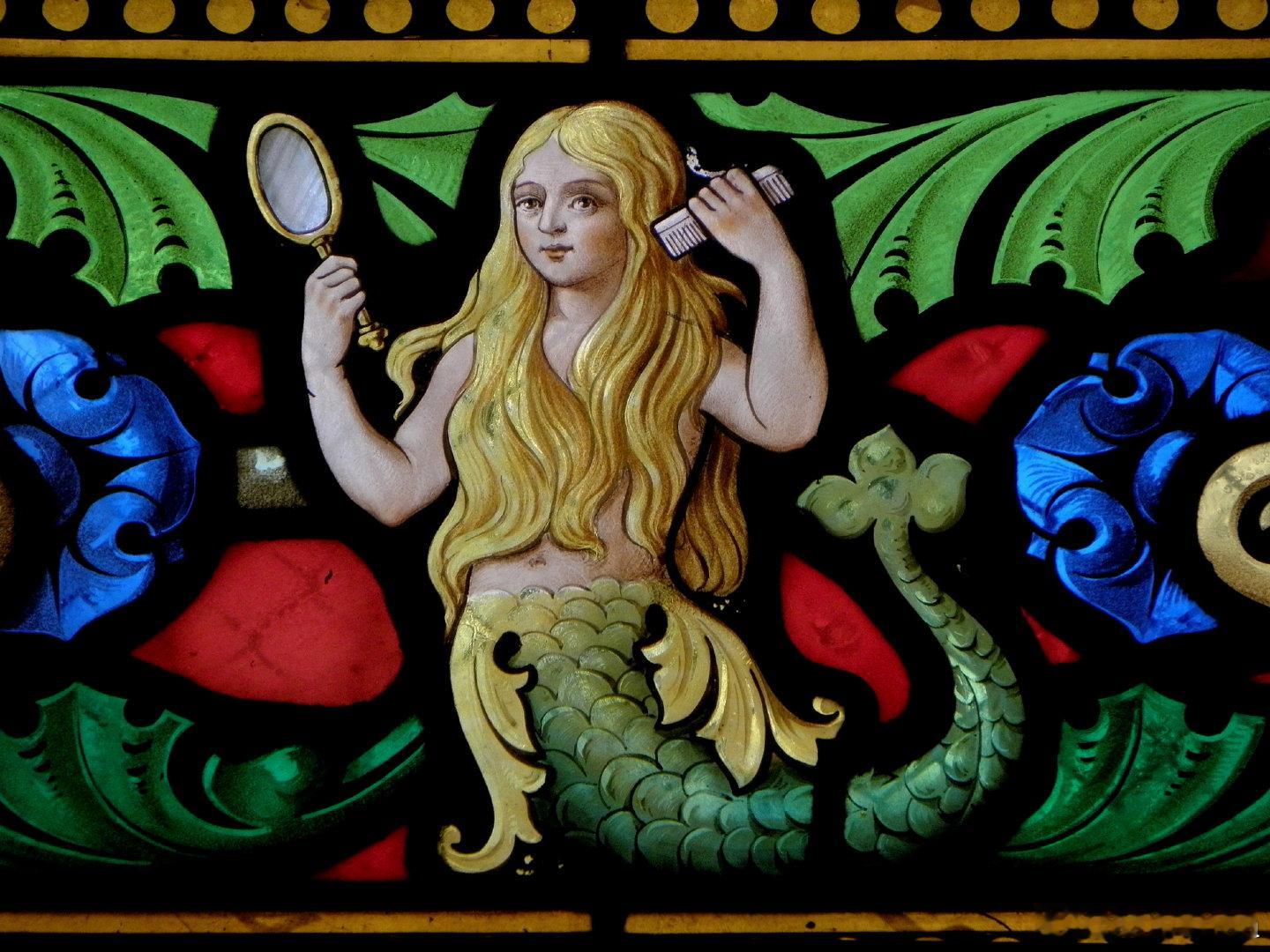 历史知识 法国布列塔尼城市富热尔圣叙尔皮斯教堂(Église Saint-Sulpice de Fougères,图2)中彩色花窗玻璃展现的欧洲著名水妖美露莘(Mélusine)。