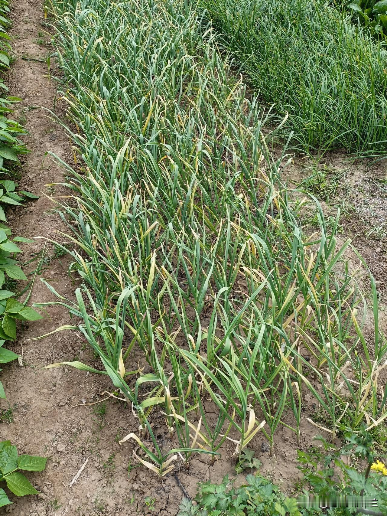 今年春天我栽的大蒜长得不太好,叶子已经黄了,老妈说可能是重茬的原因,随便它吧,能长点独头蒜我就知足了。