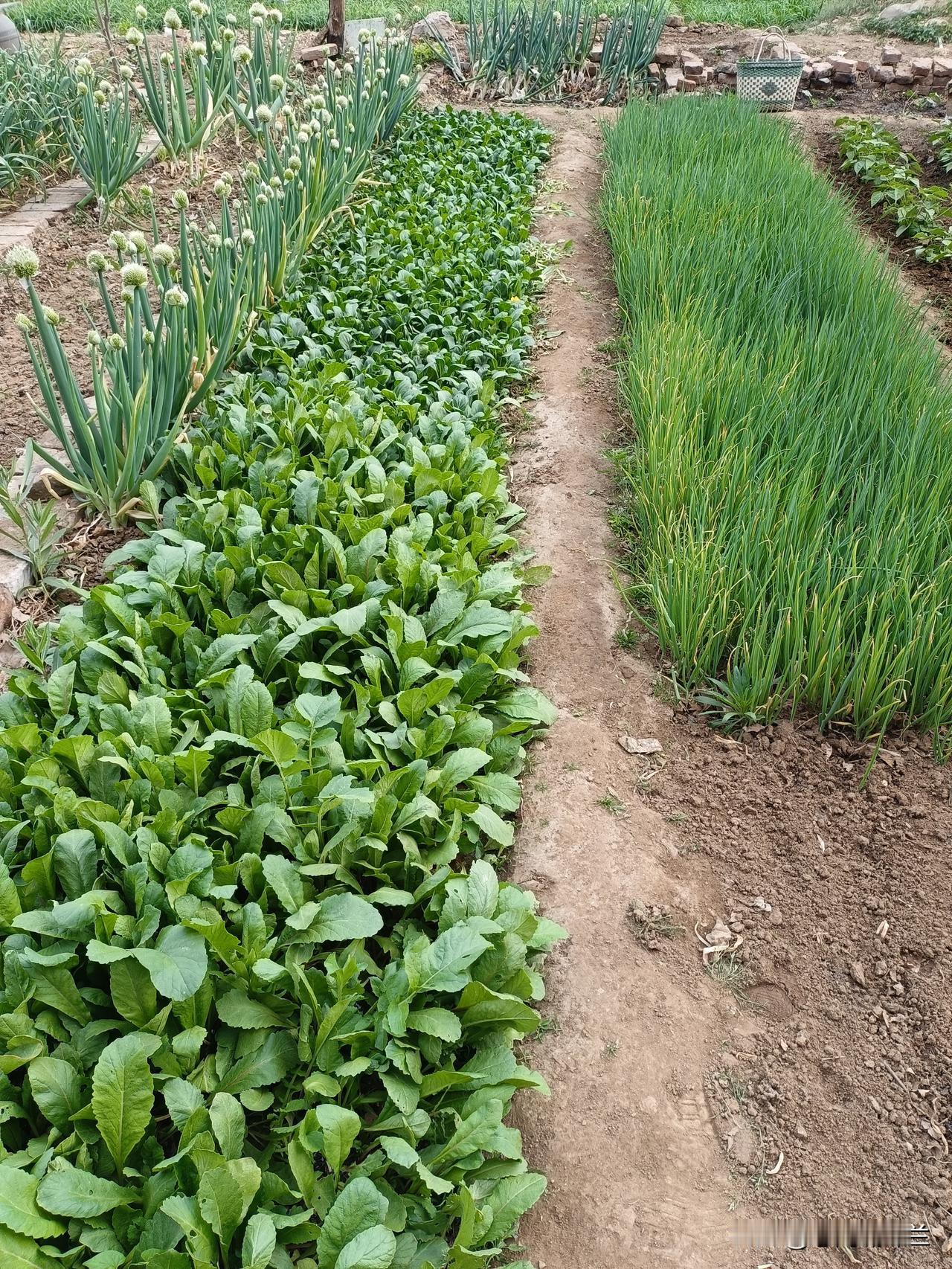 浇完了水萝卜跟油菜,我把水放到了韭菜畦里,老妈说先回家,一会儿再来关水。