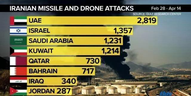 但问题也卡在这里。火力一分散,威力就被摊薄。哪怕导弹和无人机数量看起来很热闹,分给多个国家和地区,再分摊到几十天里,每个方向承受的强度都会下降。对以色列来说,这种压力难受,却未必致命。