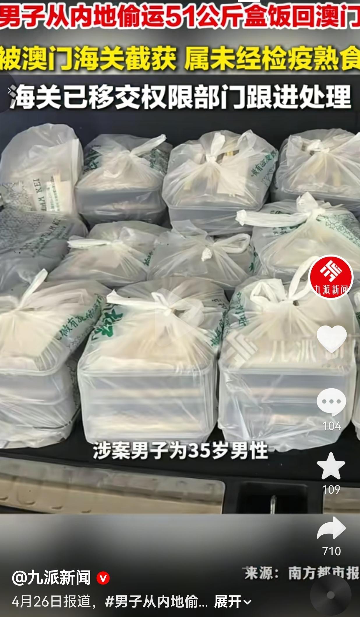 51公斤盒饭被海关截了,澳门大哥的“偷饭之路”,把网友看笑了也看懵了