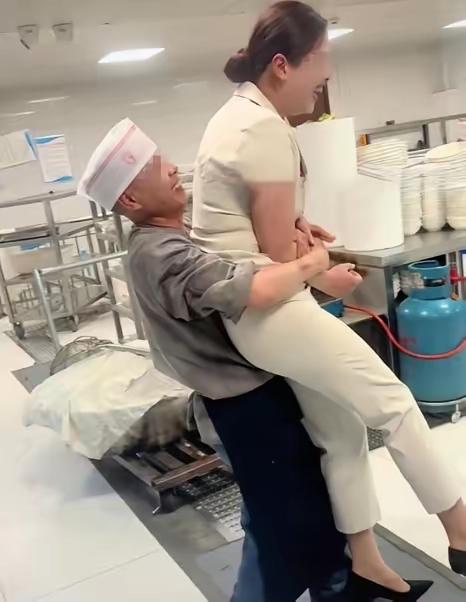 先说最劲爆的画面。一个40多岁小个子厨师,面对身高1米74的漂亮老板娘,突然一把抱起,还原地转圈、高举挥甩,现场直接变成搞笑秀。前三下顺利,第四下突然滑倒,两人差点摔懵。这尴尬场面,被旁边员工用手机拍下,视频一点也不假,连老板娘笑意、厨师翻车的窘态都收得清清楚楚。