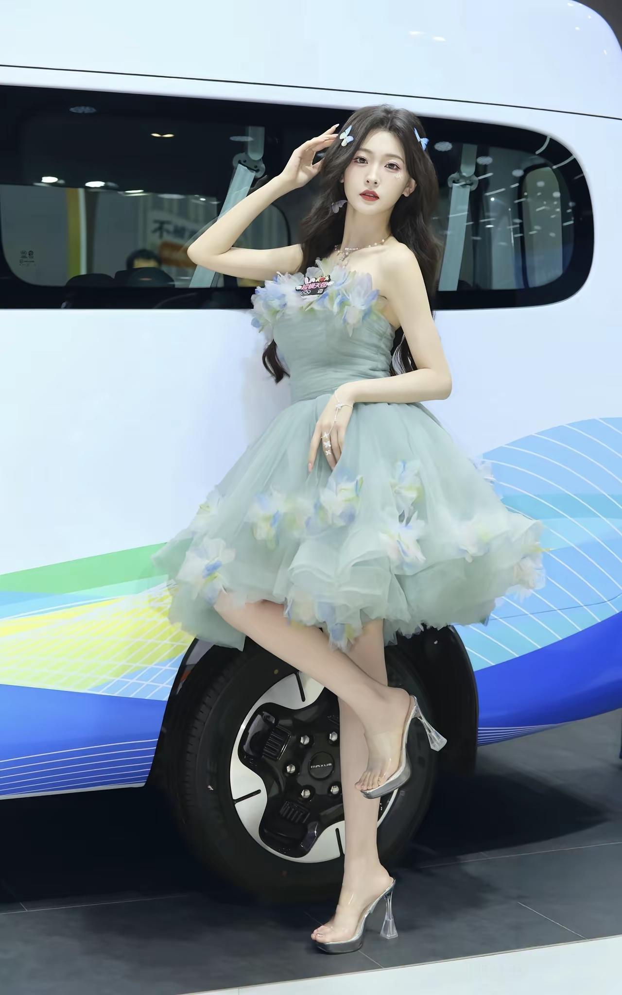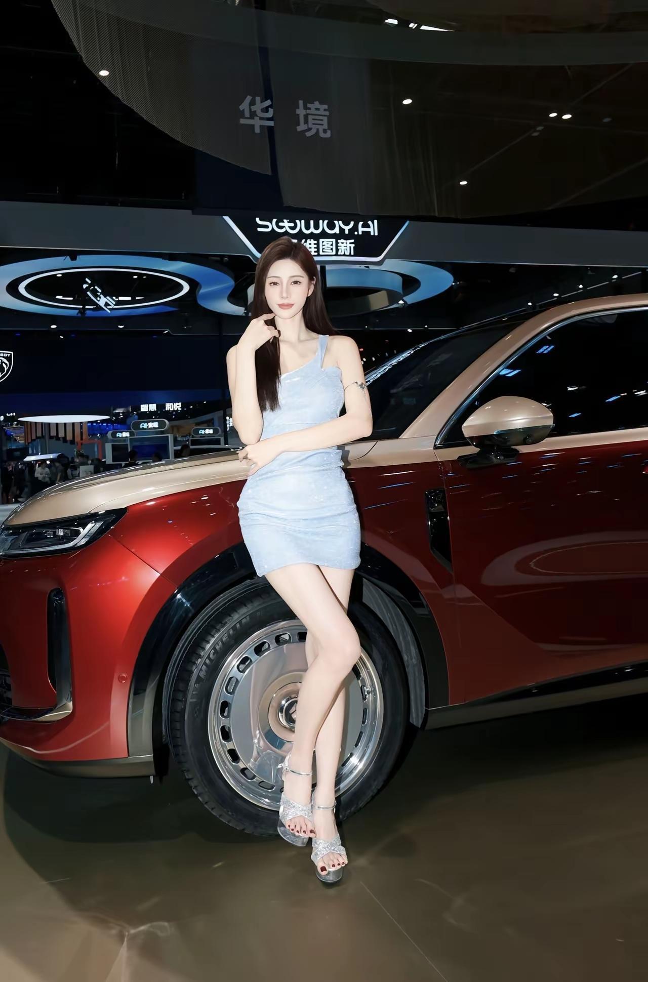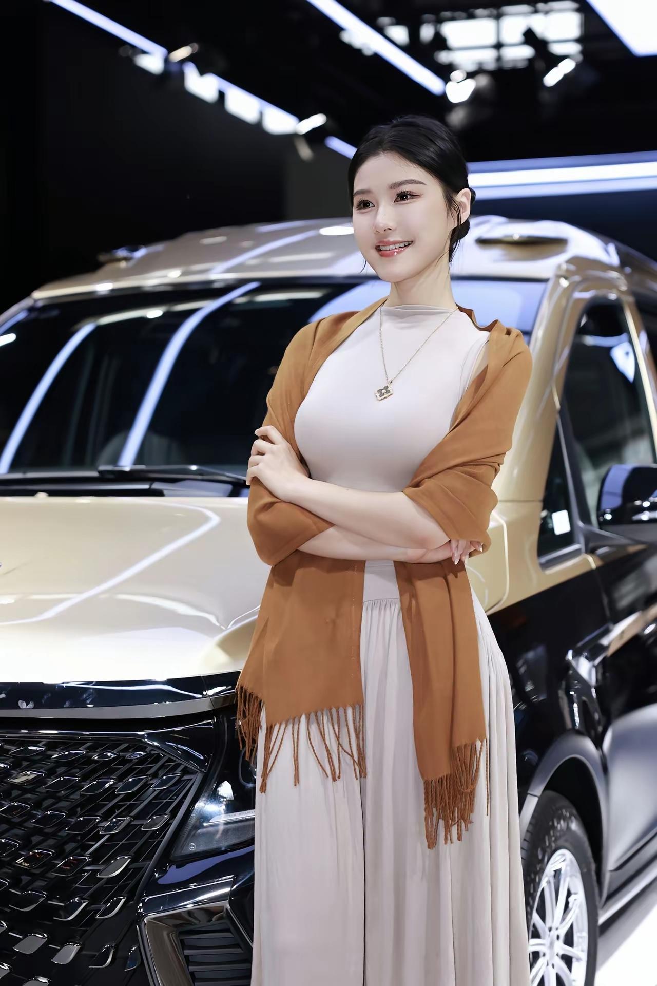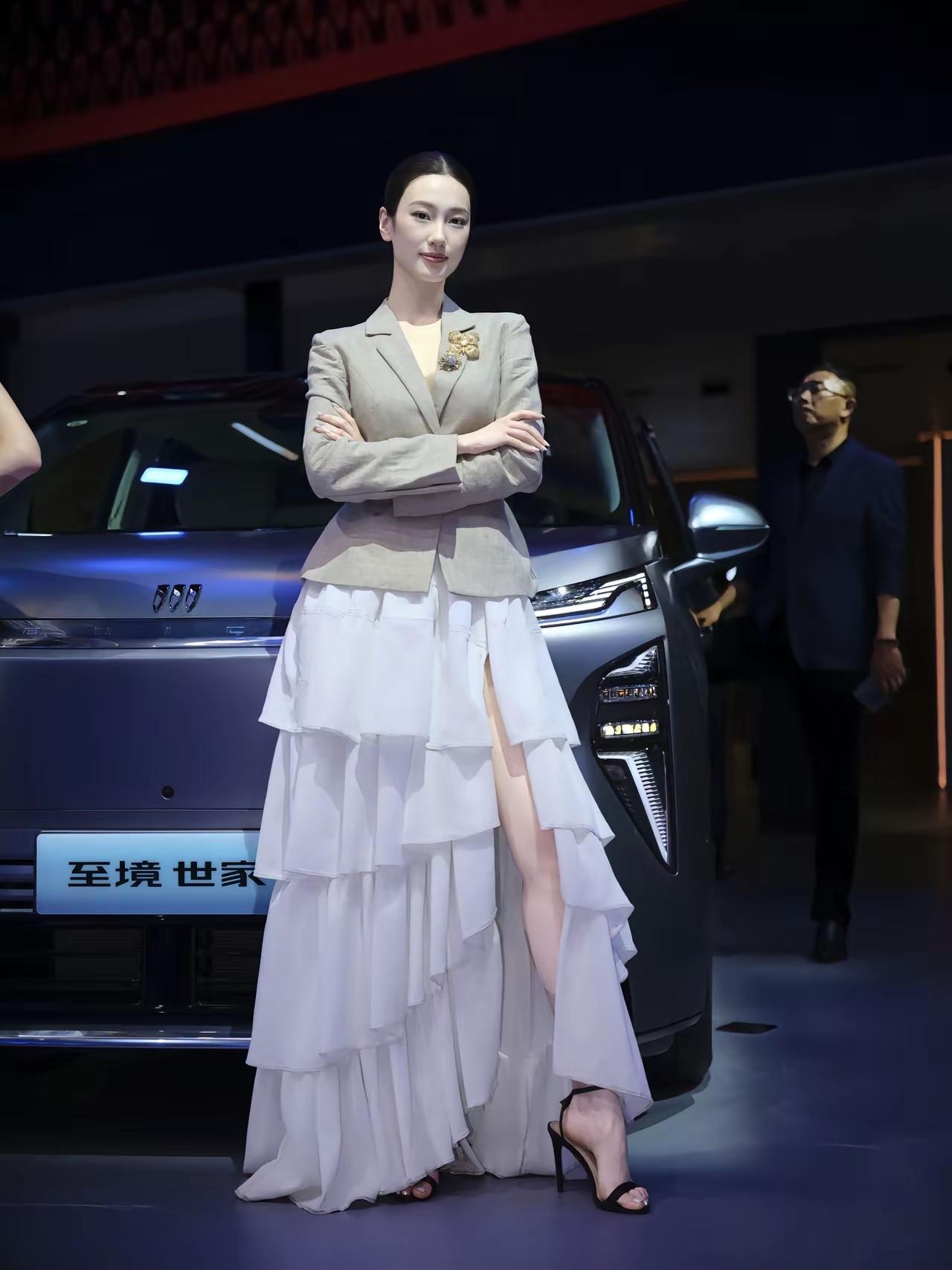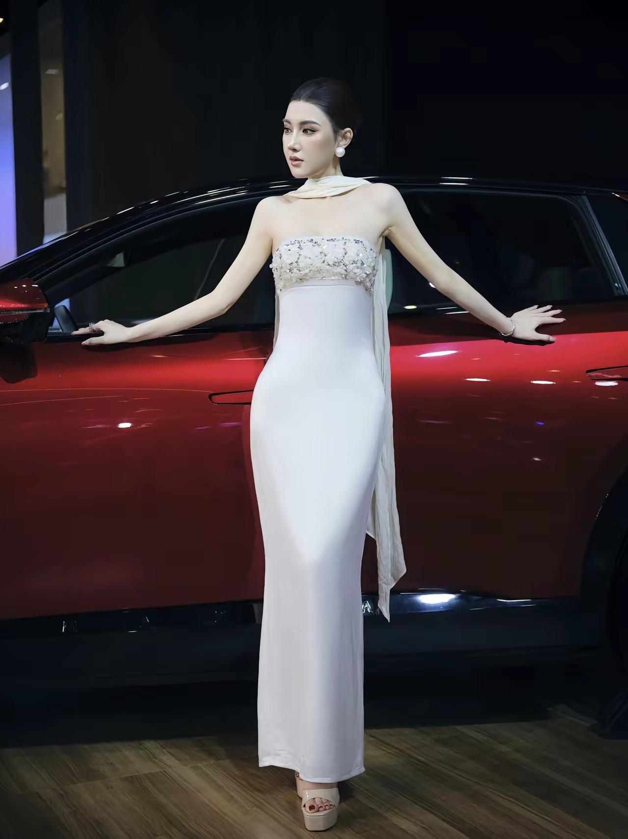 4月26日,车模兽兽继续参加北京车展,特地换了一身白色的束腰裙子,可是从背影看虎