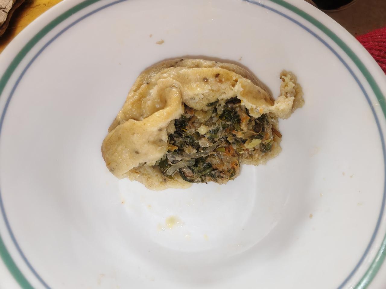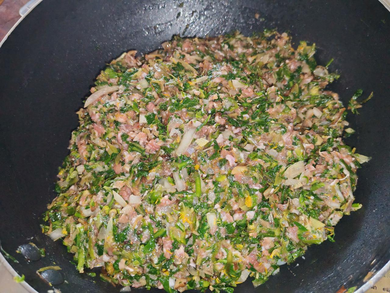 今天晚饭,我和老伴包的蒲公英馅的包子和饺子。