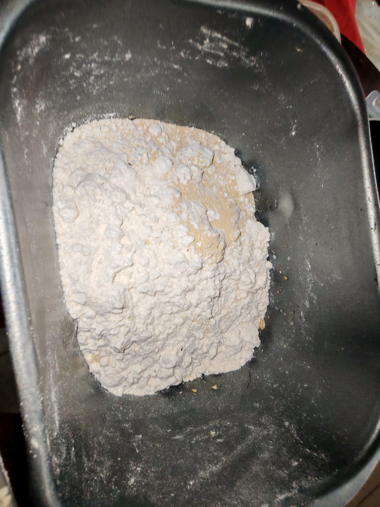 我们放了一碗白面,两碗全麦粉,又放了两袋“速食燕麦片”。