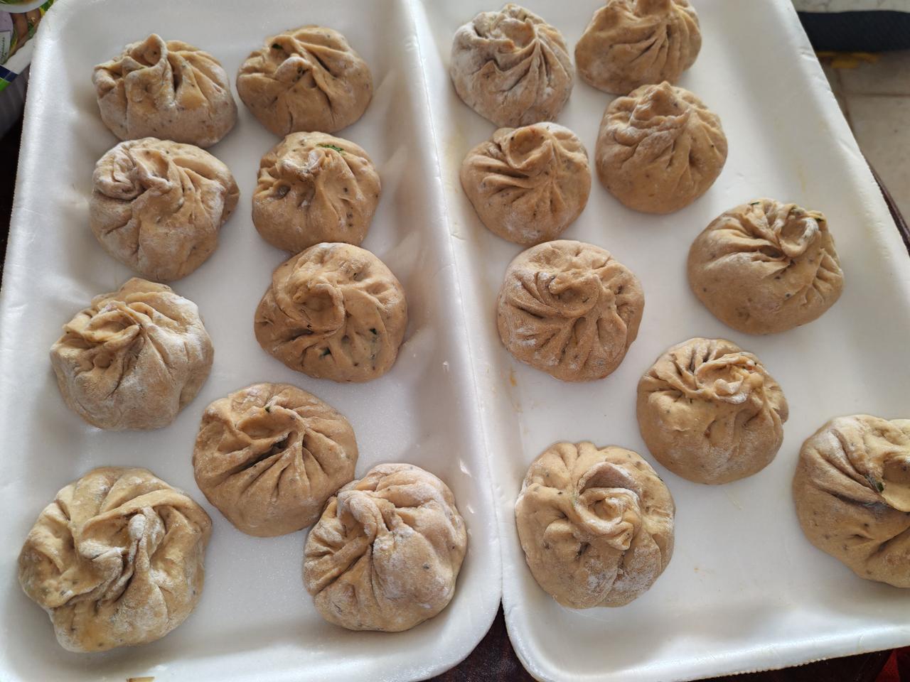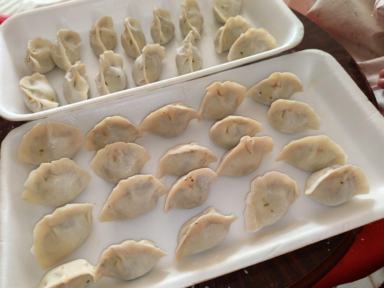 我包了两大塑料盘包子。又剩了点馅,三先生又用和面机和的饺子粉,又包了两大盘饺子。