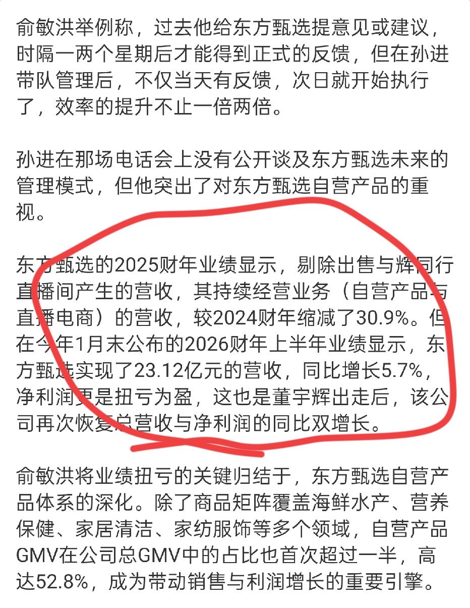 2026年东方甄选缓过劲来,营收增长和利润为正。根据报道,此时东方甄选新领导的策略,向新人主播倾斜资源!原来的老主播削减分成,更是军事化管理,白话就是严格考核,上下班要打卡,缺勤要扣绩效!