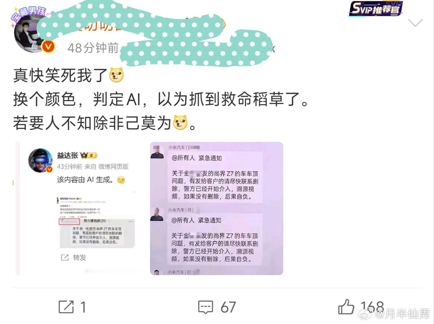 知名大V用AI图带节奏(图1),恶意P图给小米扣帽子,误导了大量不明真相的网友。