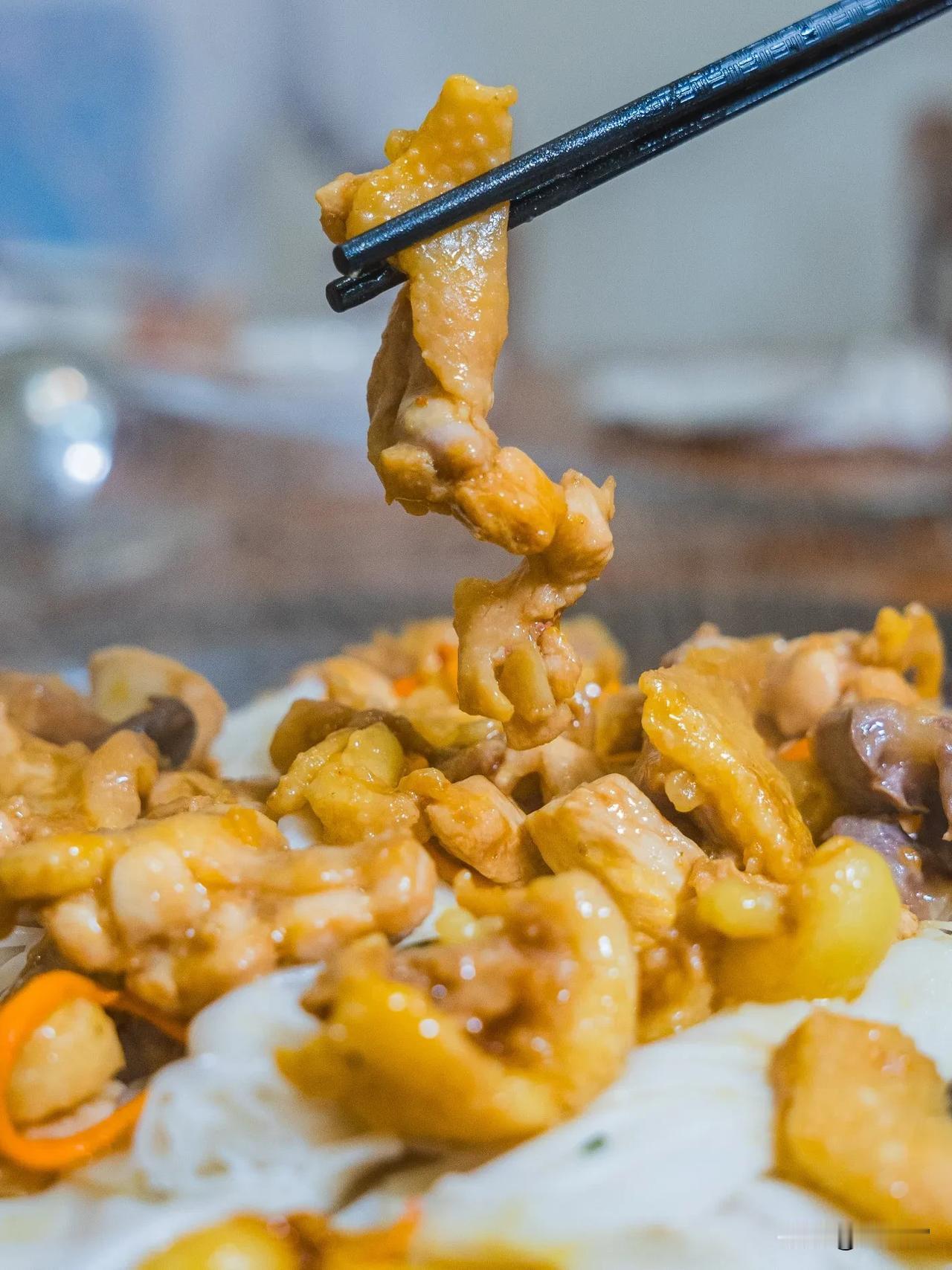 陈村粉用来垫桑拿鸡,持续吸收上浓郁的鸡汁,口感爽弹柔滑,可以说是当之无愧的神仙级主食!