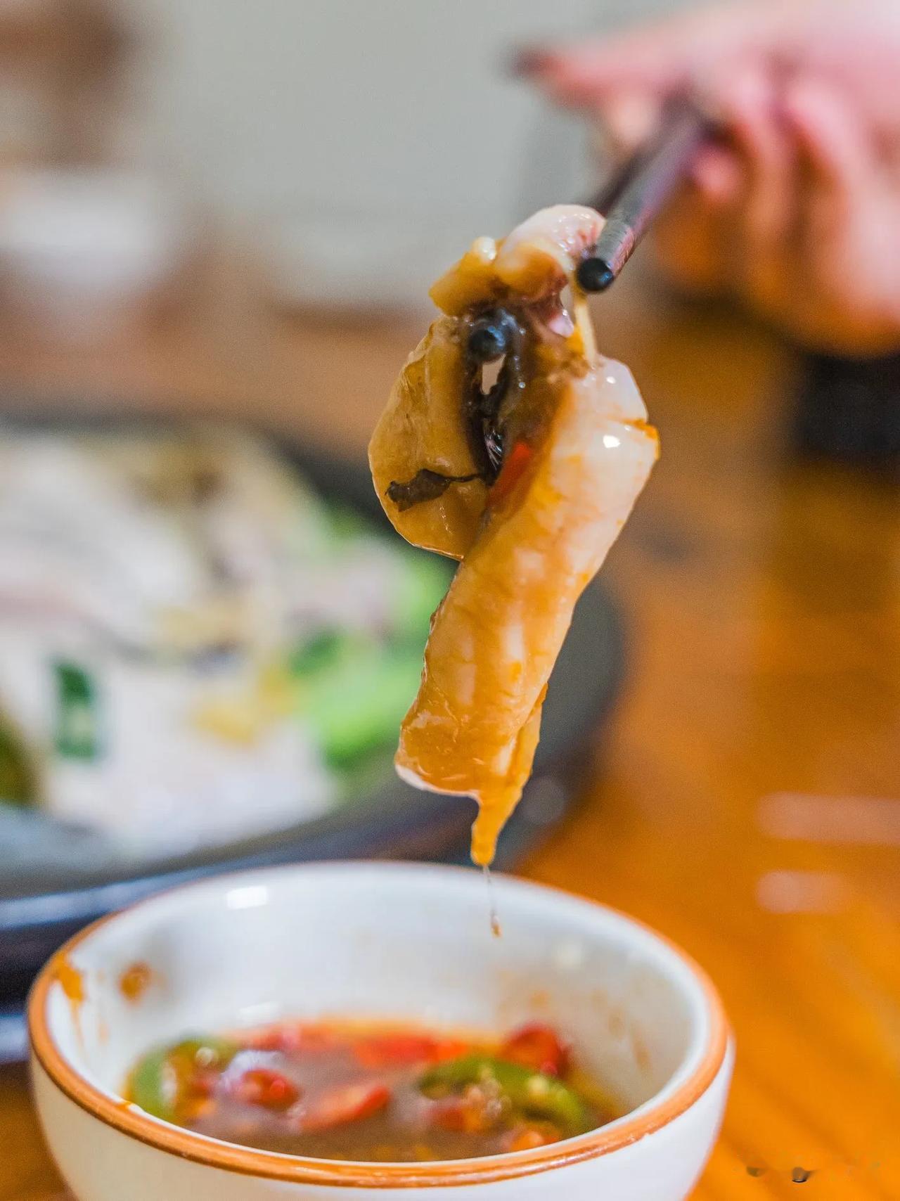 顺德师傅刀工出神入化。鲫鱼本多刺多骨,但这里把骨刺剔得干干净净却依然保持了鱼肉的完整,不用担心卡喉。丝瓜片垫底,吸收鱼汁清甜味道,鱼肉嫩滑,老人小孩都可放心吃