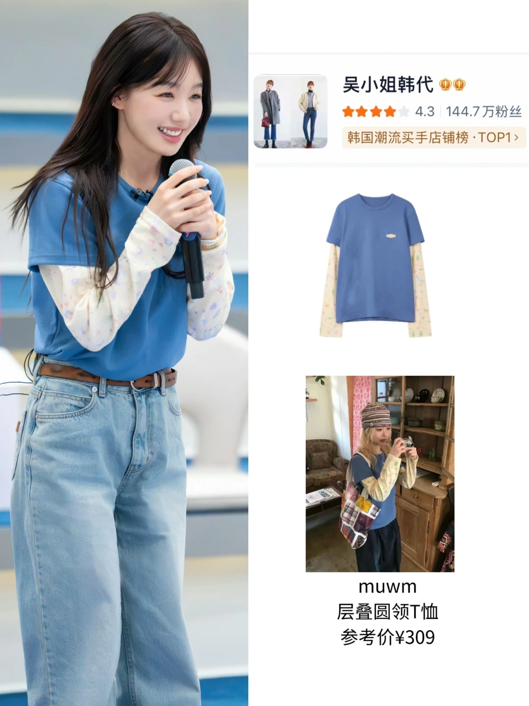 徐梦洁拿捏韩系慵懒松弛感,针织衫+假两件叠穿搭配牛仔裤,温柔又随性,日常照搬毫无压力;