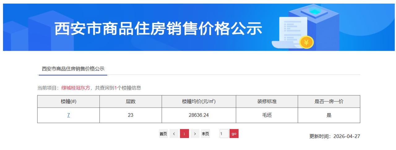 单价最高 31984 元 /㎡!日前,西安住建局官网公示了浐灞国际港奥体板块“绿城·桂冠东方项目”新一批房源的价格!