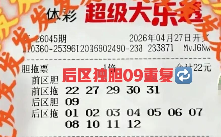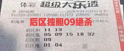 后区独胆04--05--09,这里就先帮大家排除3个号码,后区12个号码仅剩9个