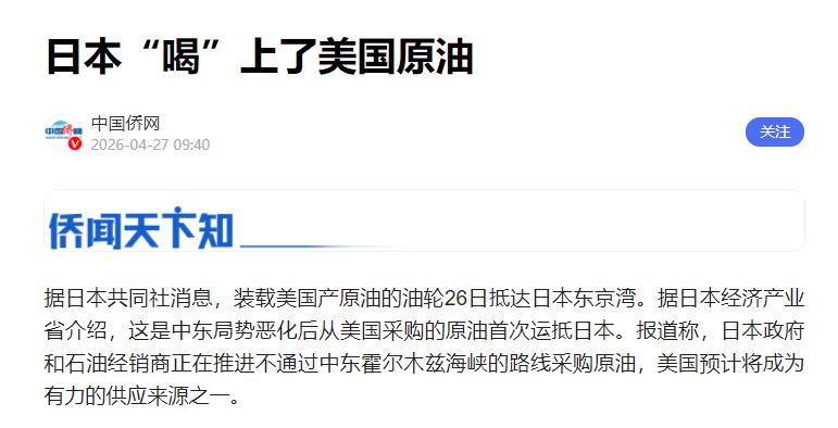 2025年美国原油在日本进口里才占4%,就算今年5月多买几倍,也替代不了中东原油。