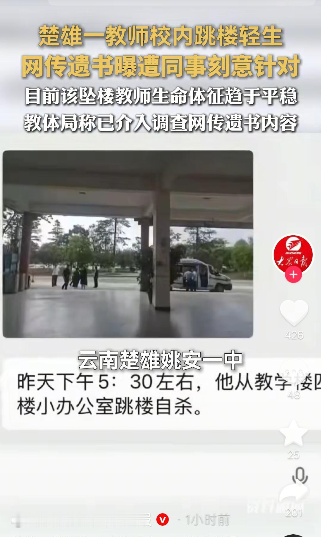 云南楚雄教师校内坠楼!