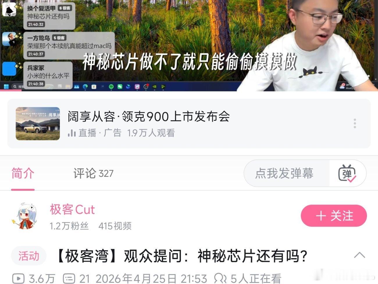 有人问某家的神秘芯片还能做吗?极客湾回答说神秘芯片做不了,但具体表现可以偷偷零散的放在很多视频里面。最新异环那期的商单里面就可以看出来神秘芯片的gpu部分大概是8g2水平。