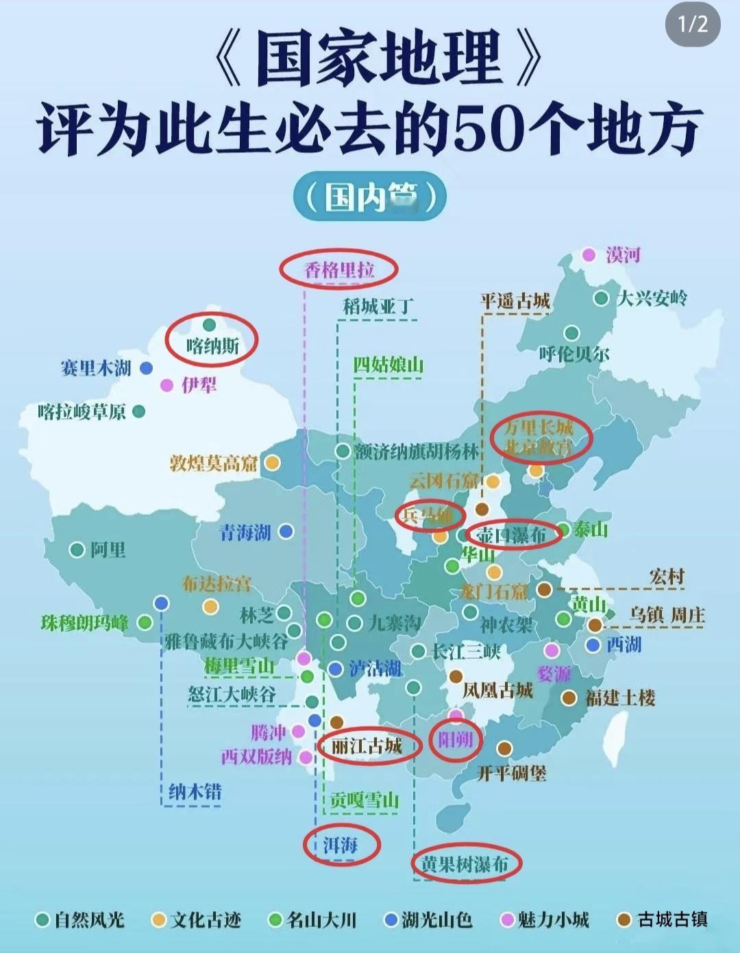 国家地理评为此生必去的国内50个地方,这其中绝大部分地方我都去过了,谈一点自己的感想。