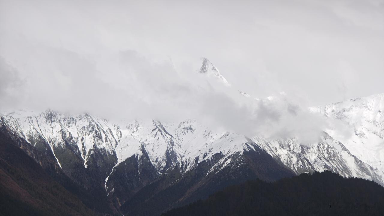 南迦巴瓦峰 。它藏语意为“直刺蓝天的长矛”,巨大的三角形峰体气势磅礴,被誉为“云中天堂”。海拔7782米,它于2005年被《中国国家地理》杂志评为中国最美的山峰之首。南迦巴瓦峰从不轻易露出真面目。因终年云雾缭绕,神秘莫测,它又被叫做“羞女峰”。据说,一年之中只有秋末冬初的二十多天能一睹它的全貌,得见者都是幸运儿。