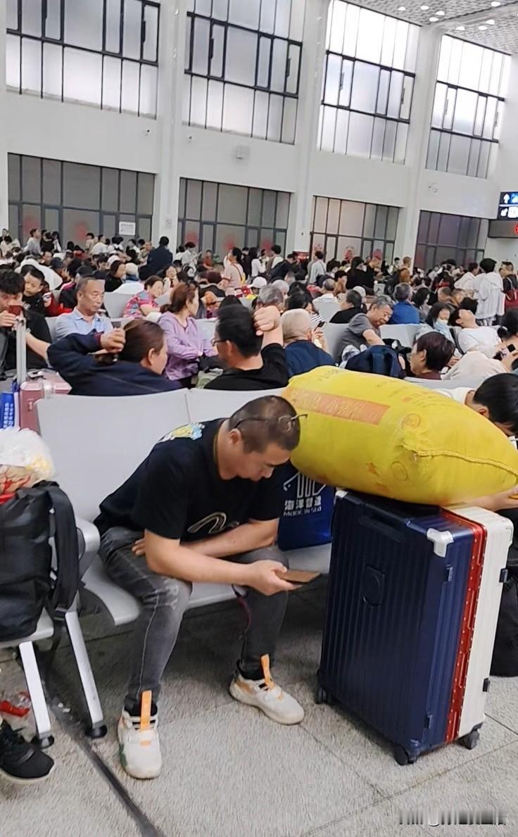 车站候车厅人满为患,我这年纪能去重点人员候车厅,享受提前进站的待遇。