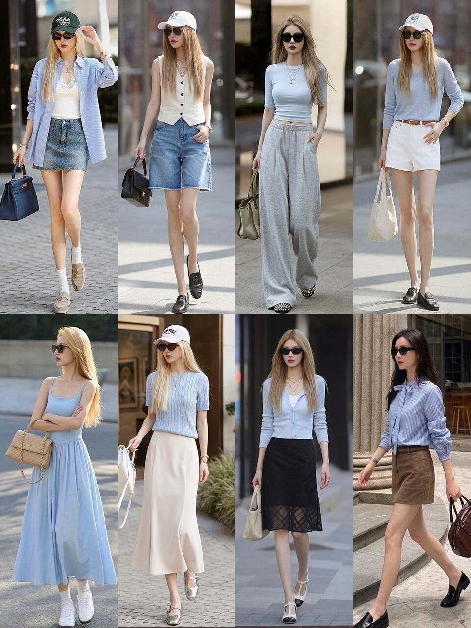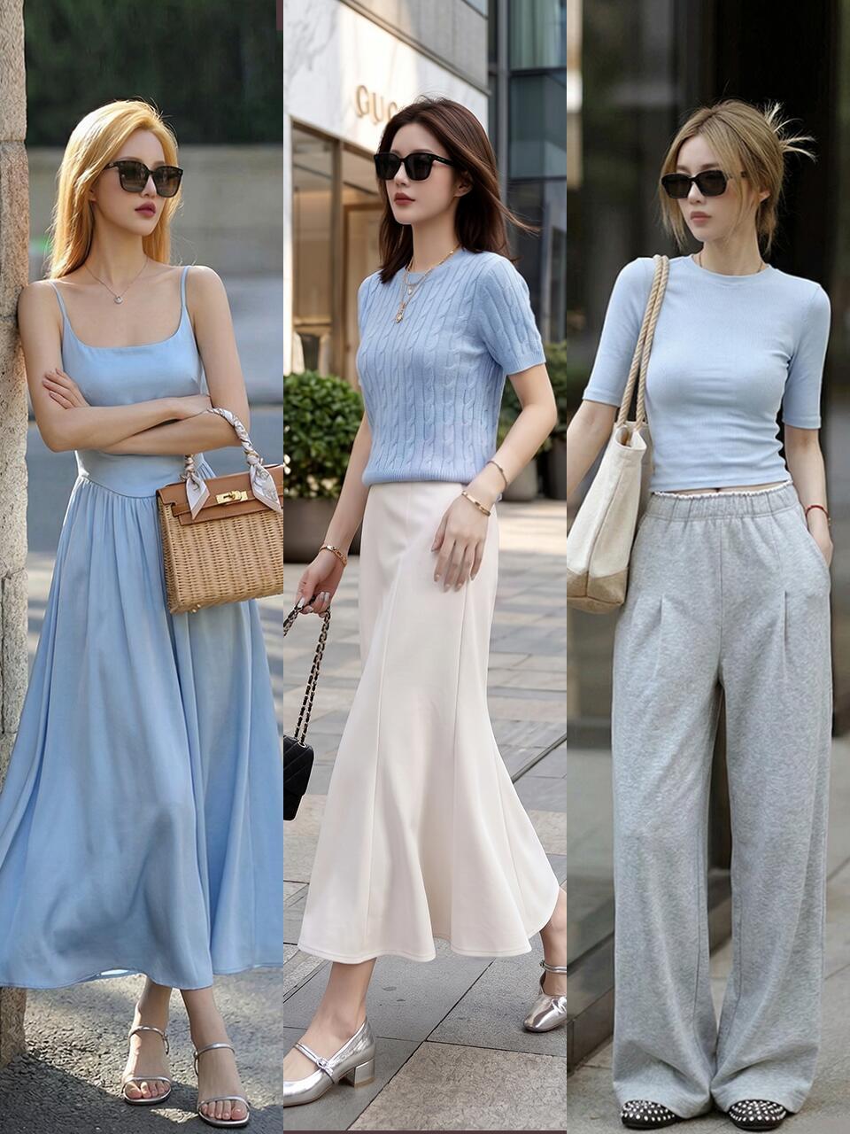 蓝色穿搭太温柔了,这组直接把松弛感拉满!从条纹衬衫、针织衫到吊带裙,低饱和蓝调自带干净滤镜,搭配牛仔单品、白色下装或咖色配饰,温柔又减龄。