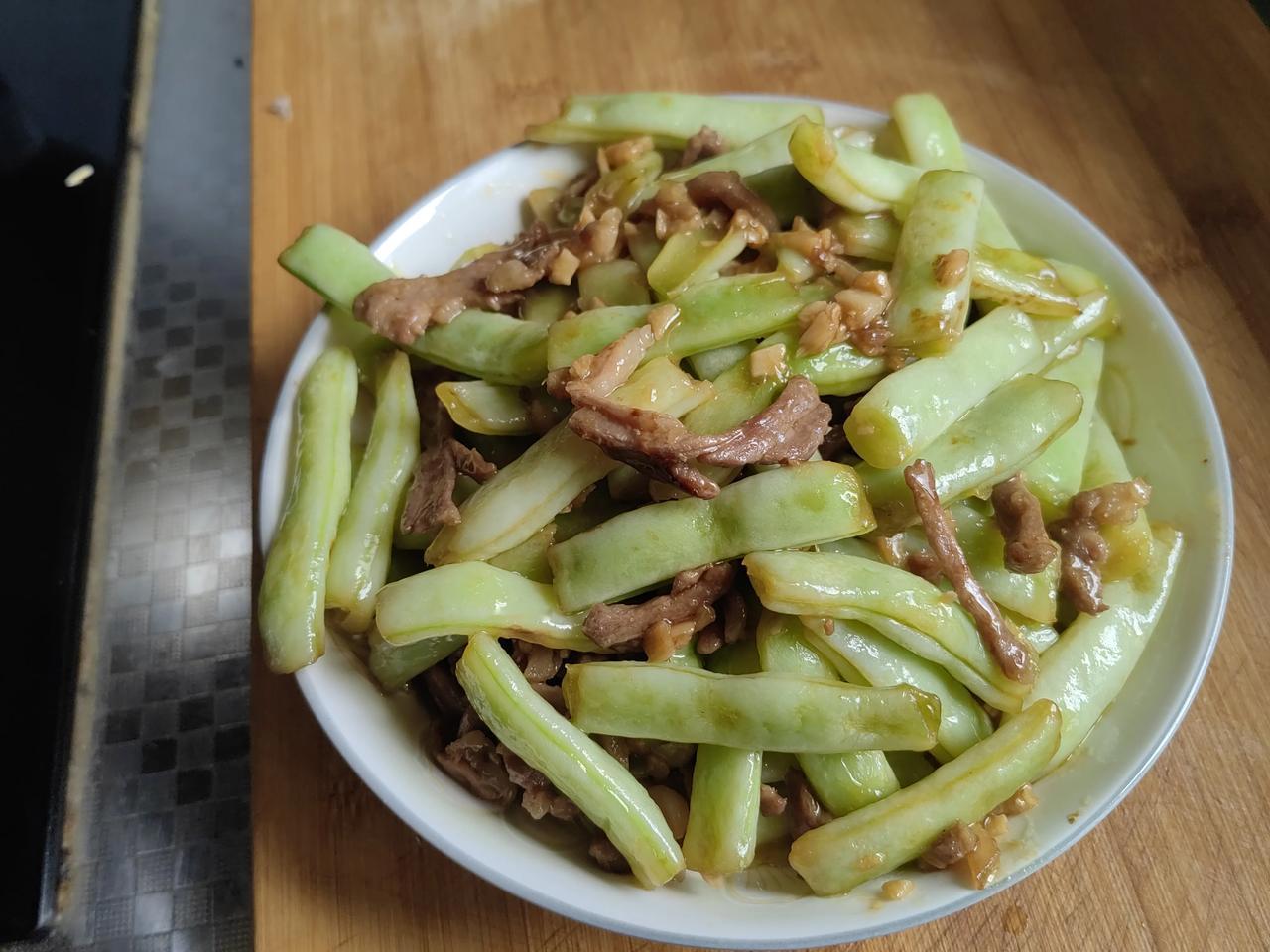 今天我看了一下,蒜苔开始有点变黄了,得紧着吃,老了就不好吃了。