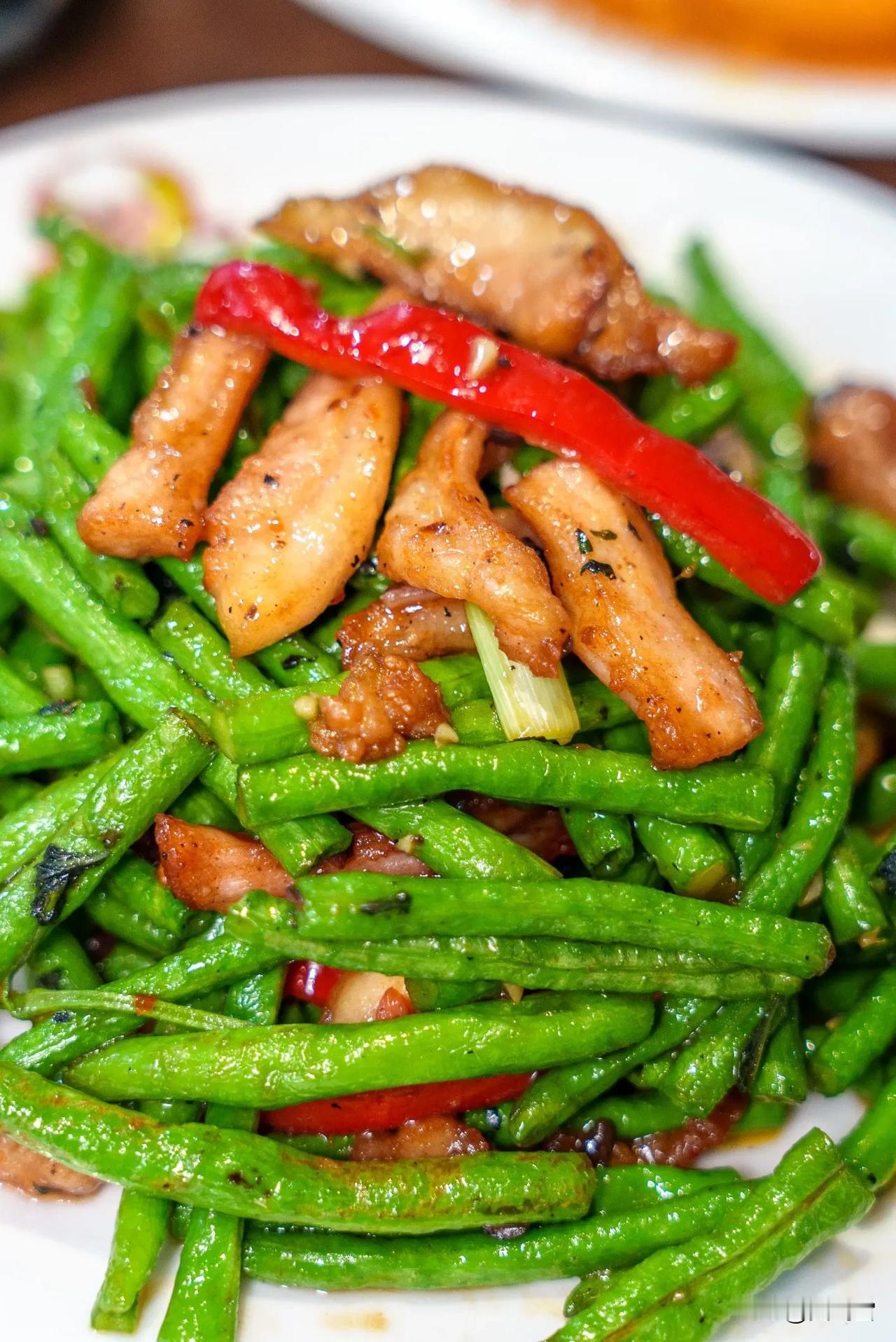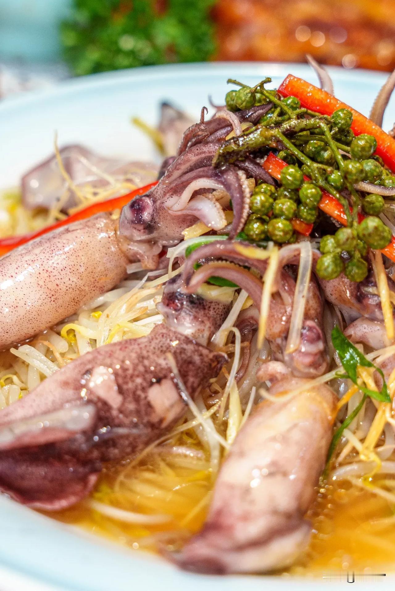 ✔️紫苏豆角炒猪颈肉——紫苏香气霸道,猪颈肉爽脆,豆角清甜,三者居然毫不违和。鲜花椒灼鱿鱼则走麻香路线,鱿鱼花刀切得漂亮,入口弹牙,鲜花椒的麻味慢慢爬上舌尖,过瘾。