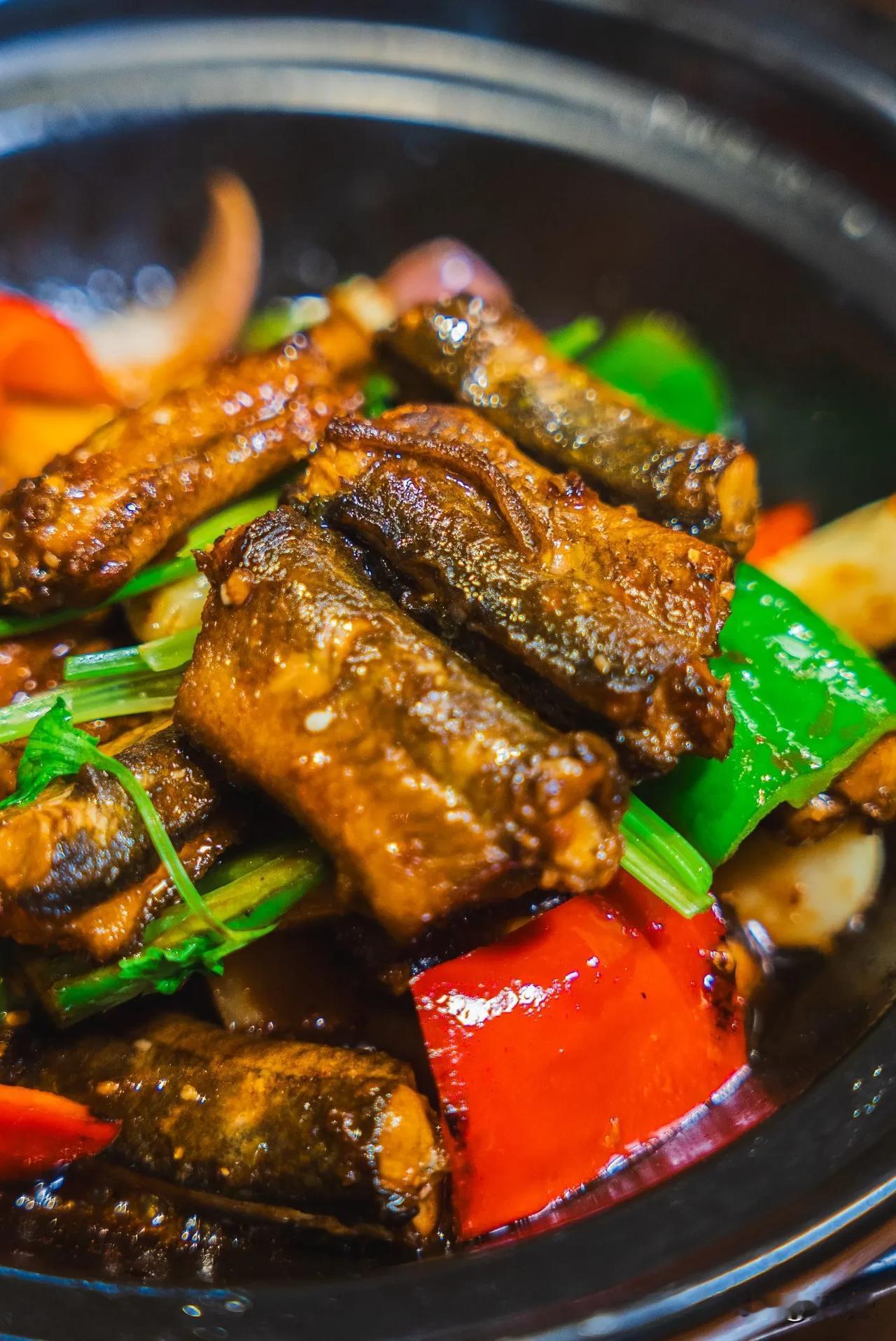 ✔️生啫黄鳝煲端上来时还在“啫啫”作响。黄鳝肥美,蒜头、姜片、红葱头的香气全被高温逼进肉里,揭盖的瞬间香气扑面。