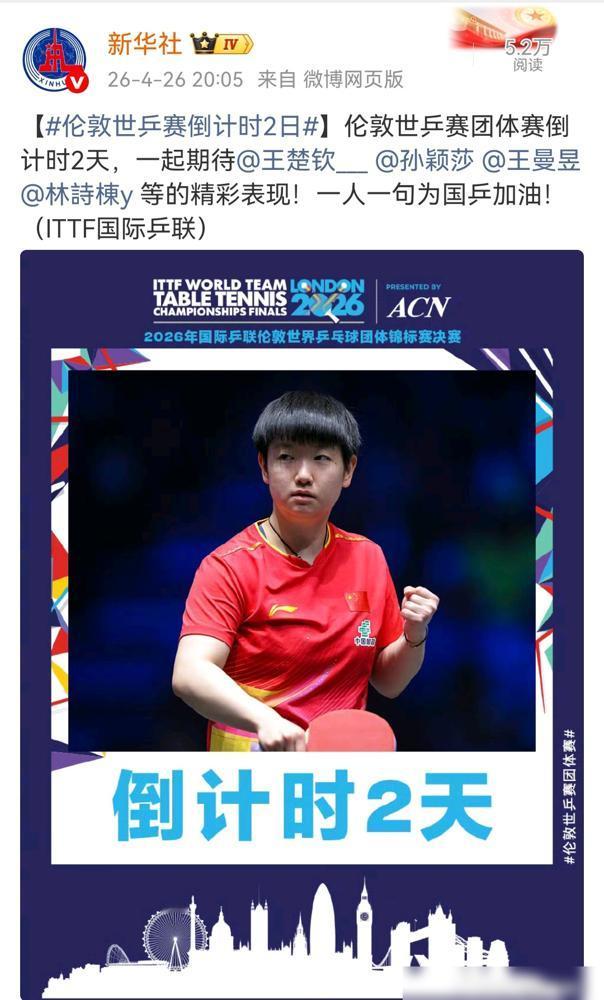 伦敦世乒赛倒计时,孙颖莎竟不是压轴!新华社的海报,把女队领军人放在了第二天,这信号你看懂了吗?
