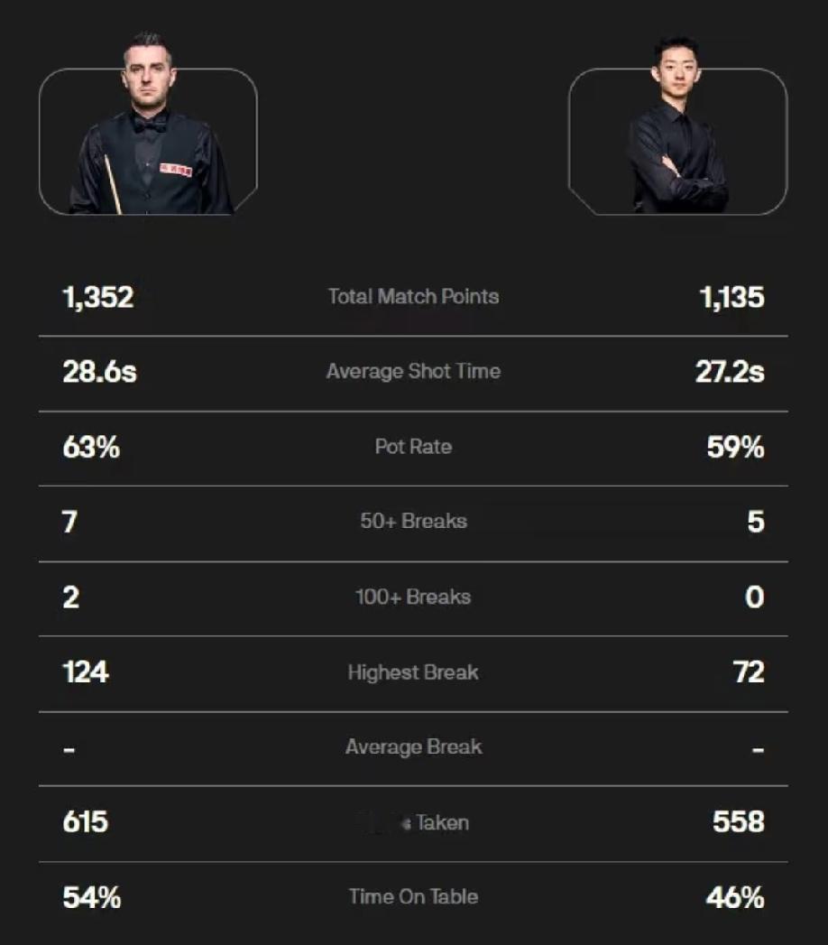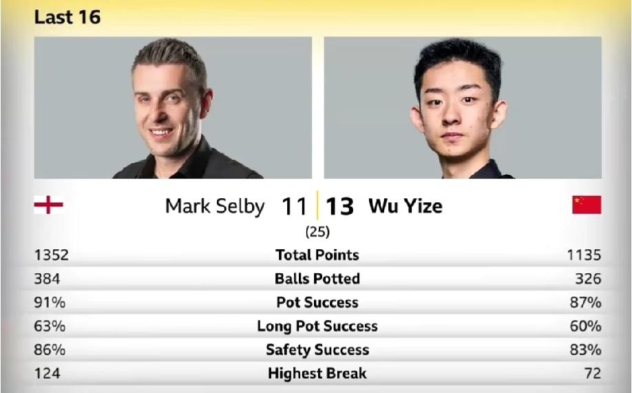 双方数据对比,塞尔比vs吴宜泽
