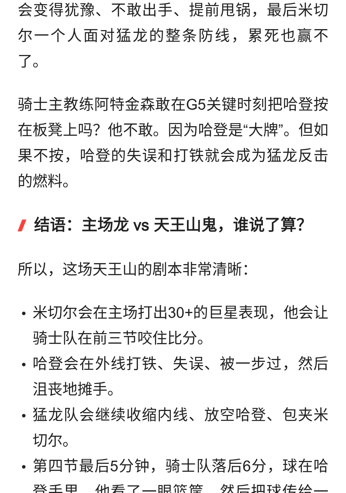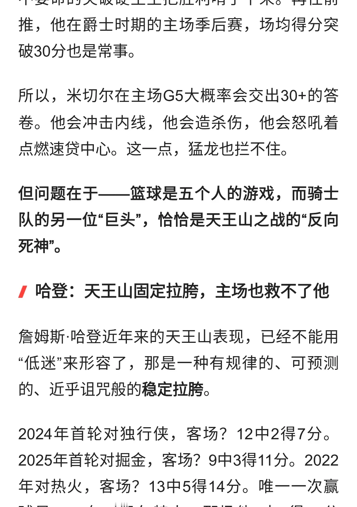 其实g5不用太关注哈登,哈登现在就这样了不会爆也不会太拉因为他在骑士很多进