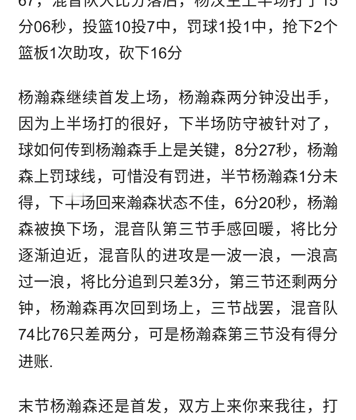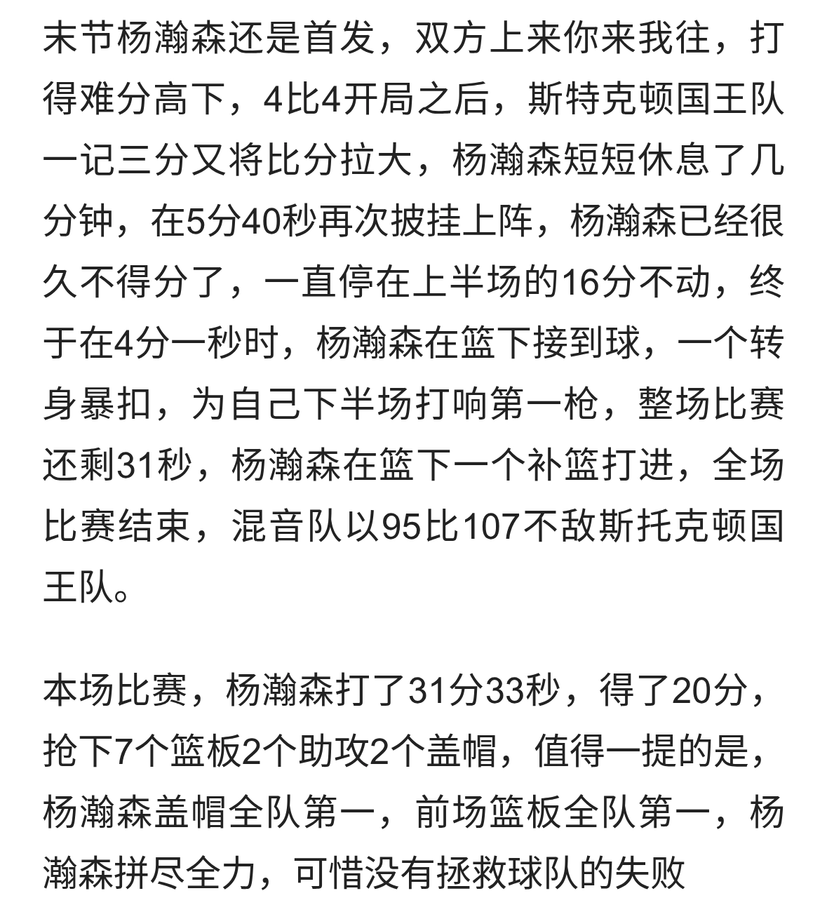 杨瀚森再战季后赛,暴砍20+7+2+2,两项数据排在全队第一