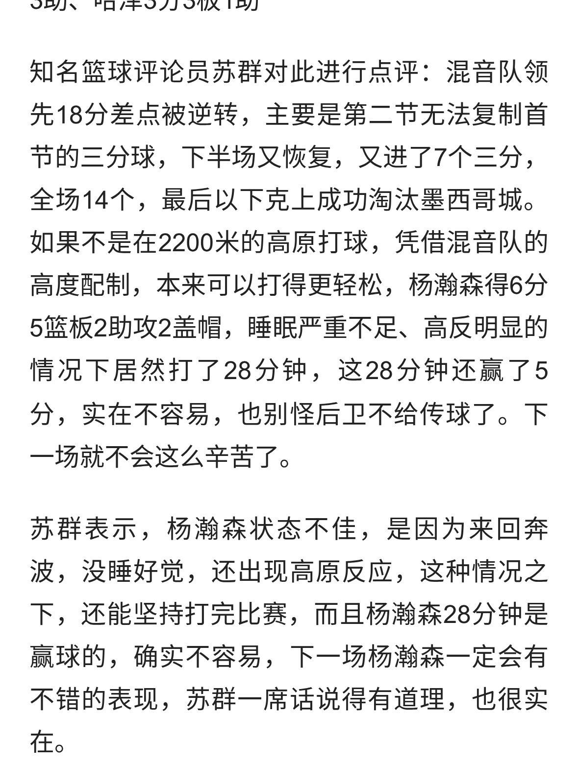 杨瀚森季后赛首秀为什么打不出状态?苏群一席话,说得非常实在