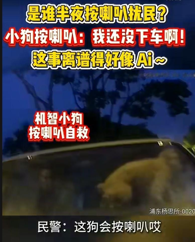 上海一位车主,半夜把狗忘在车里,自己上楼睡觉了。狗子憋得慌,又没法打电话,灵机一动——用爪子狂按喇叭。