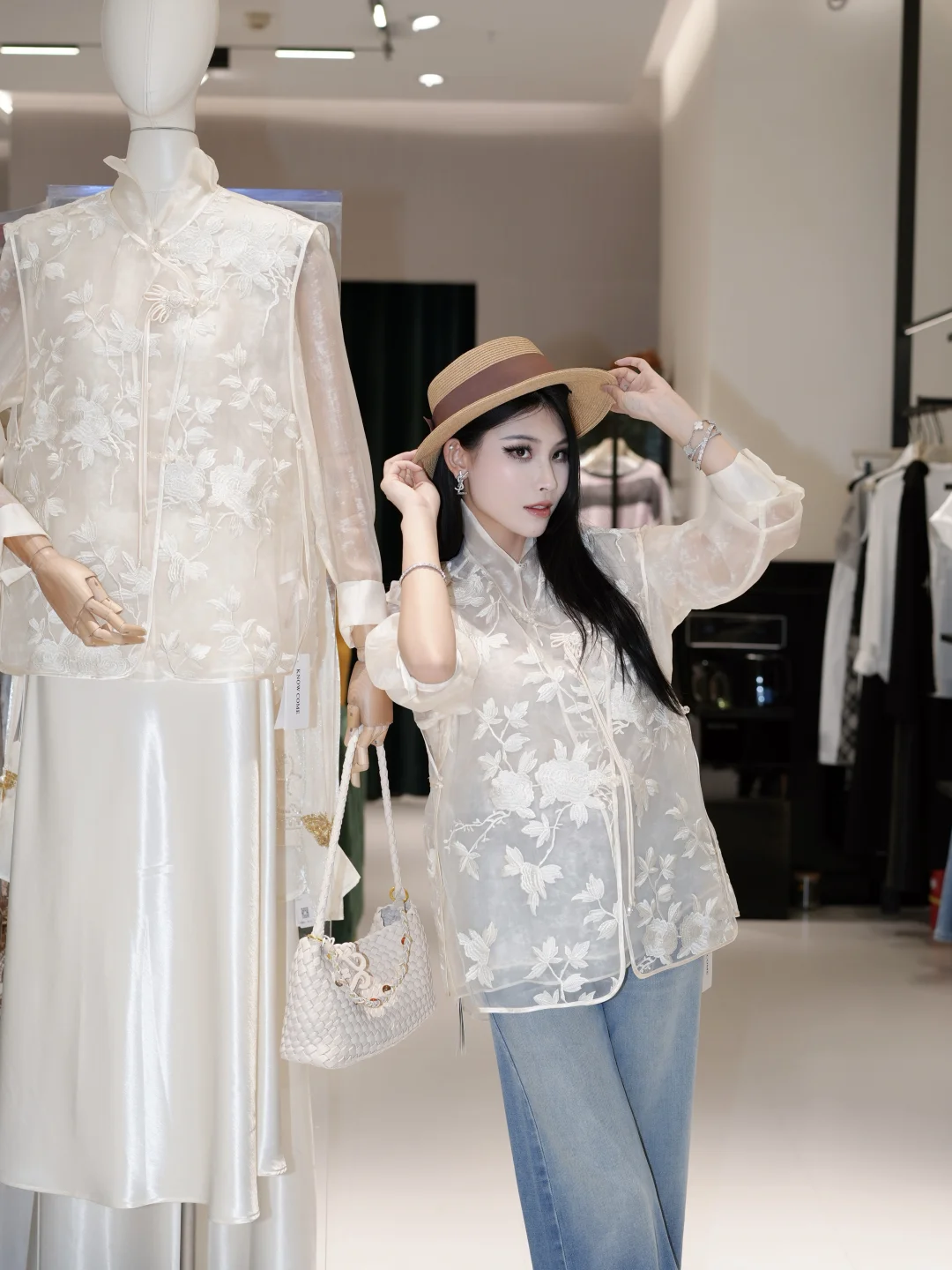 ▪️渐变阔腿牛仔裤+新中式仙女白上衣💕💖