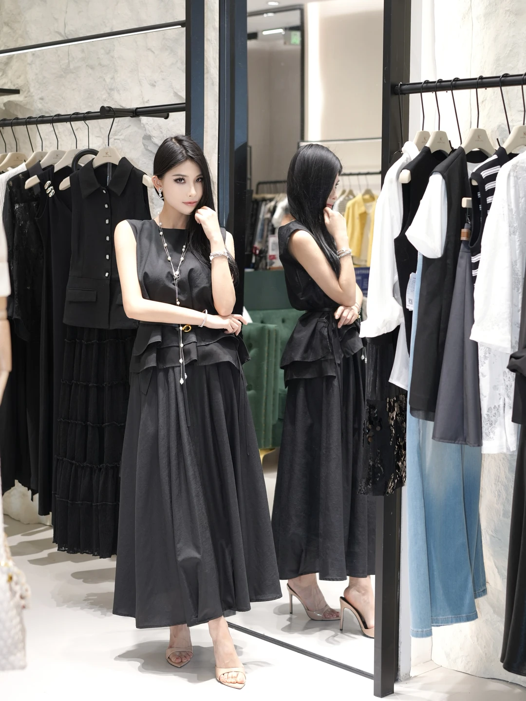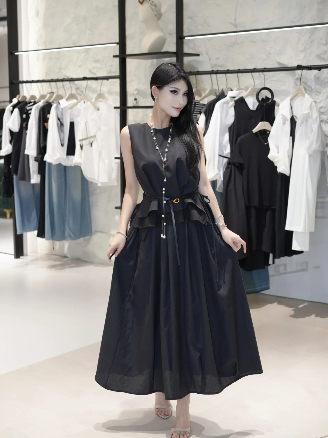 ▪️气质黑长裙+珍珠项链🖤🐚