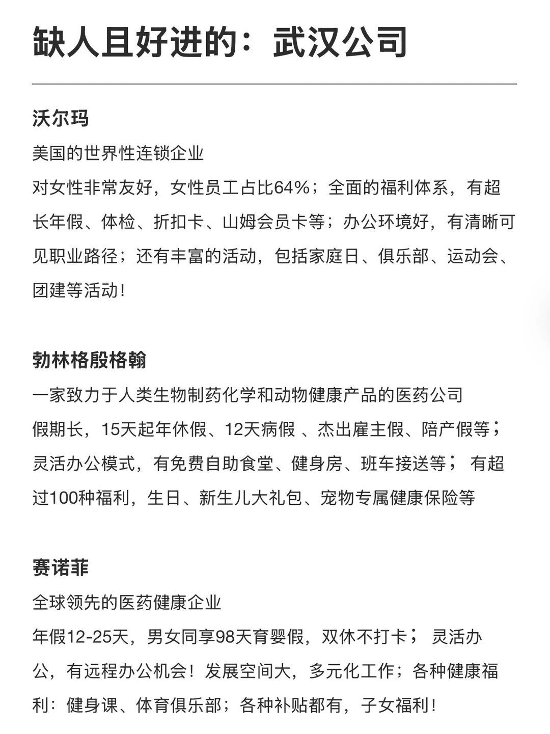 缺人且好进的:武汉公司