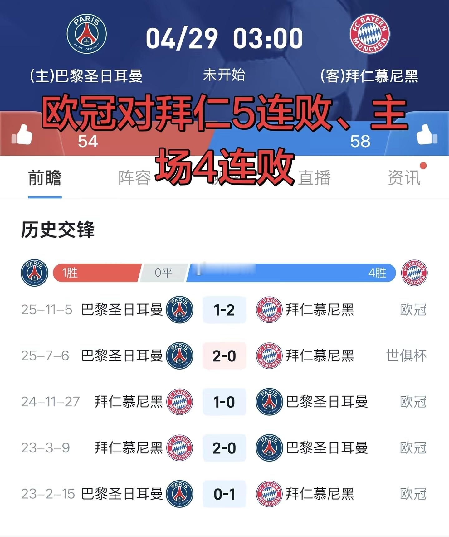 巴黎近期状态稳健、近9场8胜1负、 欧冠双线发挥稳定、 双杀利物浦零封晋级、 主场战力强悍、防守韧性十足。拜仁势头炸裂、豪取九连胜、 提前拿下德甲冠军专心冲欧冠、 强势淘汰皇马、 进攻力全欧顶尖;但队内伤病不少、客场隐患明显。两大豪门狭路相逢、 术博弈拉满、 实力旗鼓相当、这场欧冠半决赛对决悬念直接拉满!拜仁慕尼黑巴黎圣日耳曼