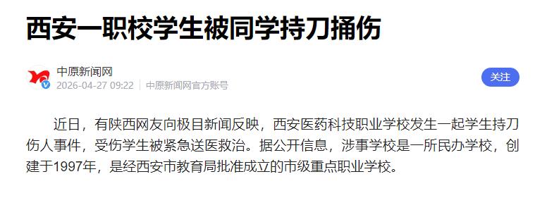 4 月 20 日,西安医药科技职业学校的一间普通宿舍里,本该是学生们轻松闲聊的日常,却因一场突如其来的暴行,瞬间沦为惊魂现场。
