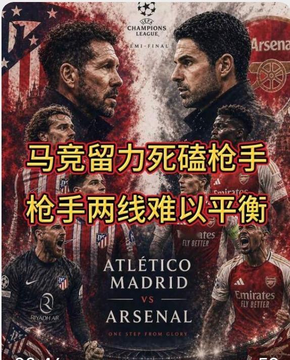 4月30日凌晨,欧冠另外一场半决赛,马竞主场对阵阿森纳!