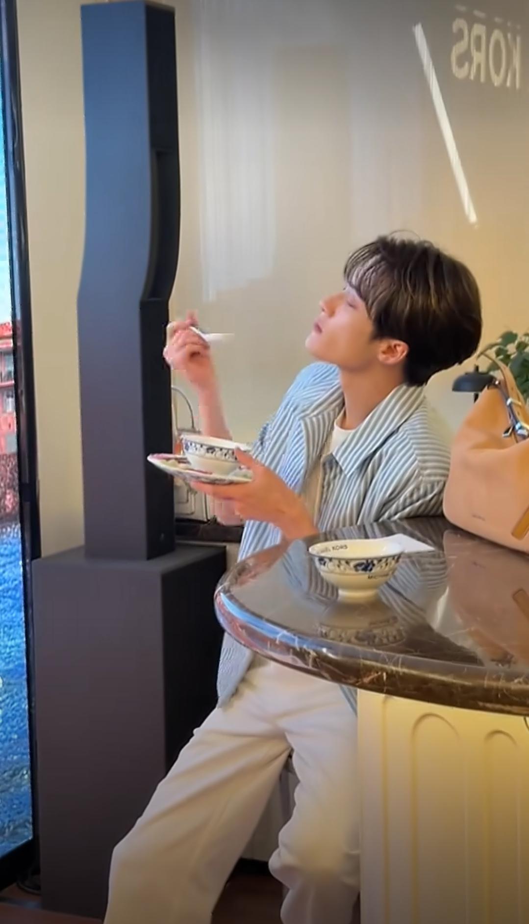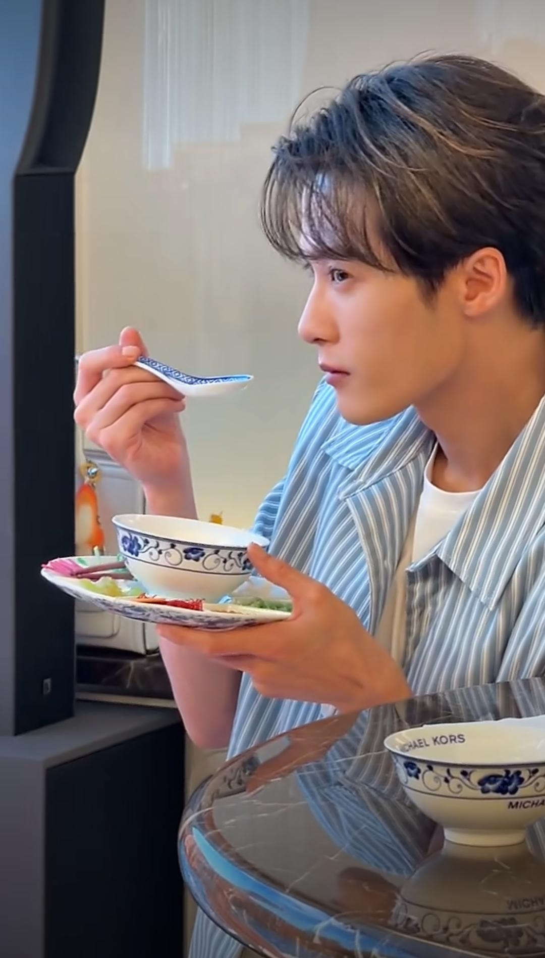然后檀健次一边红温一边开玩笑“被你们说得都想照镜子确认一下”啊啊啊可爱,跟staff确认“真吃呀?” 然后开始小仓鼠嚼嚼嚼!
